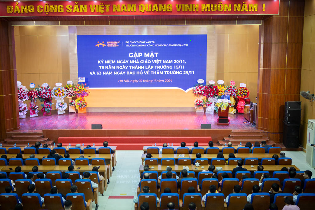 Ngày 19/11, Trường Đại học Công nghệ GTVT đã tổ chức chương trình gặp mặt kỷ niệm ngày Nhà giáo Việt Nam 20/11, 79 năm ngày thành lập Trường (15/11/1945-15/11/2024) và 63 năm ngày Bác Hồ về thăm Trường (29/11/1961- 29/11/2024).