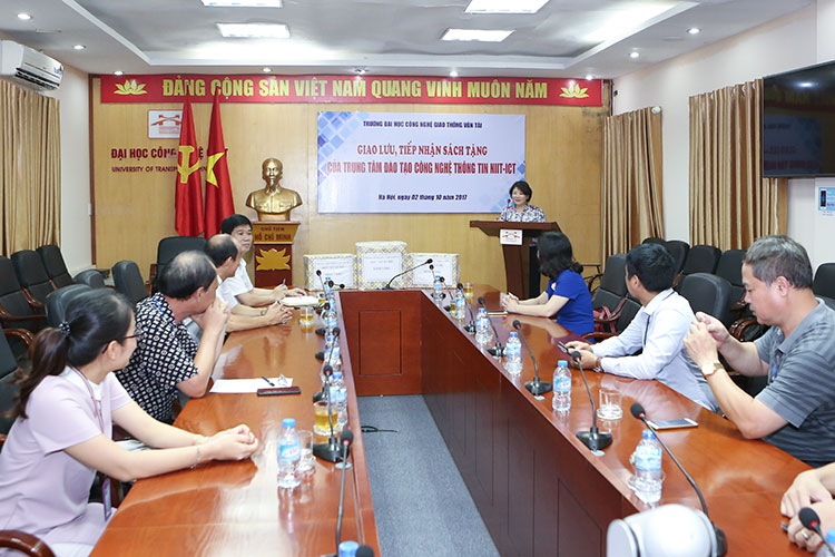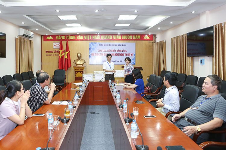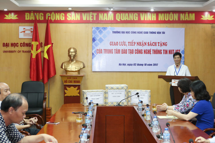 Thực hiện chương trình hợp tác giữa Trường Đại học Công nghệ GTVT và Trung tâm Đào tạo Công nghệ thông tin NIIT-ICT Hà Nội, ngày 02/10/2017, Trường Đại học Công nghệ GTVT tổ chức Chương trình tiếp nhận sách tặng liên quan tới Công nghệ thông tin từ cơ bản đến ứng dụng của TTĐT Công nghệ thông tin NIIT – ICT Hà Nội cho Nhà trường.