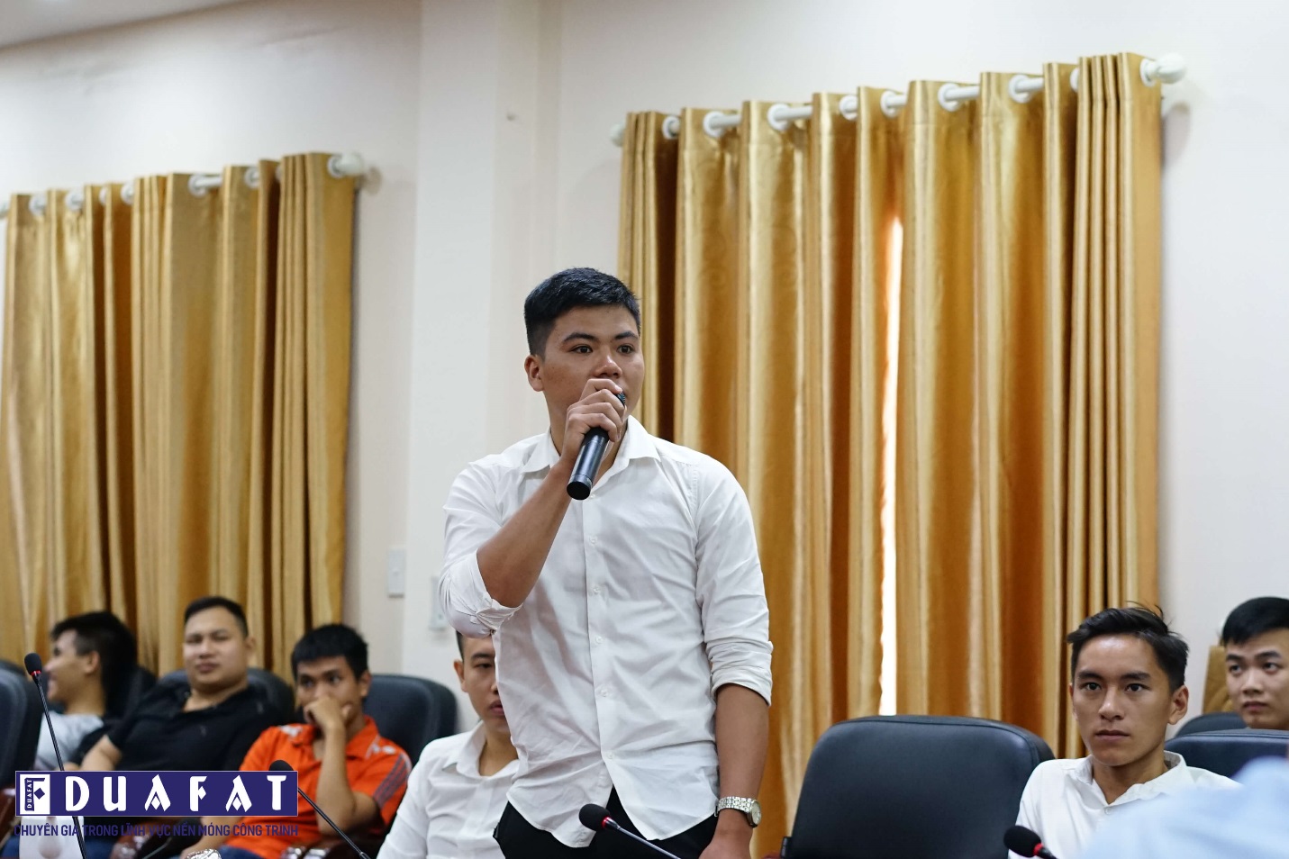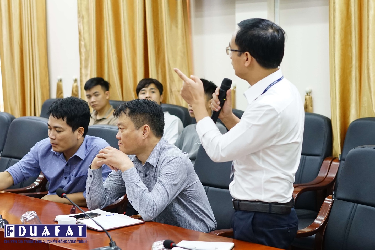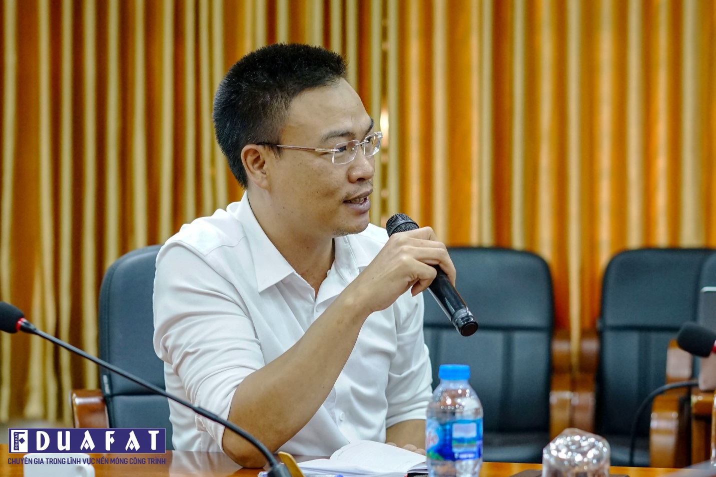 Đại diện lãnh đạo Công ty Cổ phần nền móng ĐUA FAT phát biểu, chia sẻ thông tin tại buổi Tọa đàm