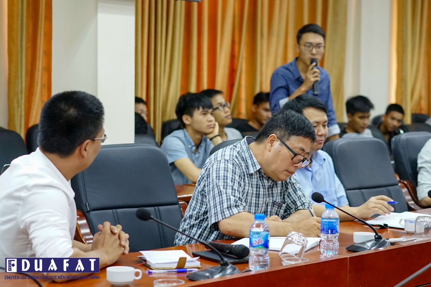 Tham dự buổi toạ đàm, về phía Công ty Cổ phần Nền móng Đua Fat có ông Trần Thanh Sơn - Trợ lý Chủ Tịch HĐQT, ông Nguyễn Mạnh Toàn - Phó Giám Đốc khối Kỹ thuật thi công kiêm Trưởng bộ phận Quản lý máy, ông Đồng Sĩ Hùng - Trưởng bộ phận đào tạo; về phía Trường Đại học Công nghệ GTVT có TS. Nguyễn Quang Anh – Trưởng Khoa Cơ khí, TS. Ngô Quốc Trinh – Trưởng phòng KHCN-HTQT, thầy Bùi Văn Trầm - Phó trưởng Bộ môn Máy xây dựng, Các giảng viên Bộ môn Máy xây dựng và gần 100 sinh viên K65 & K66 chuyên ngành Máy xây dựng.