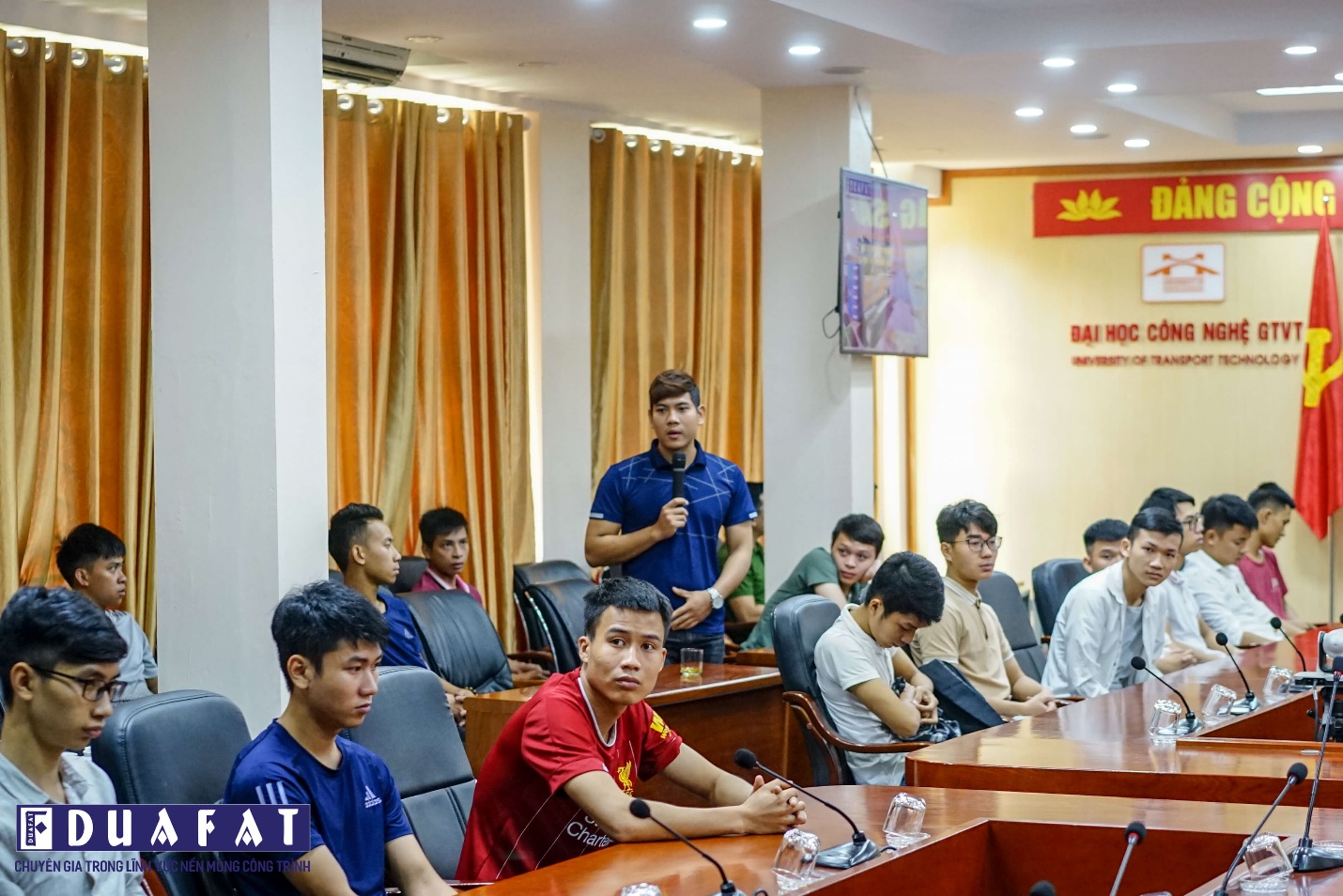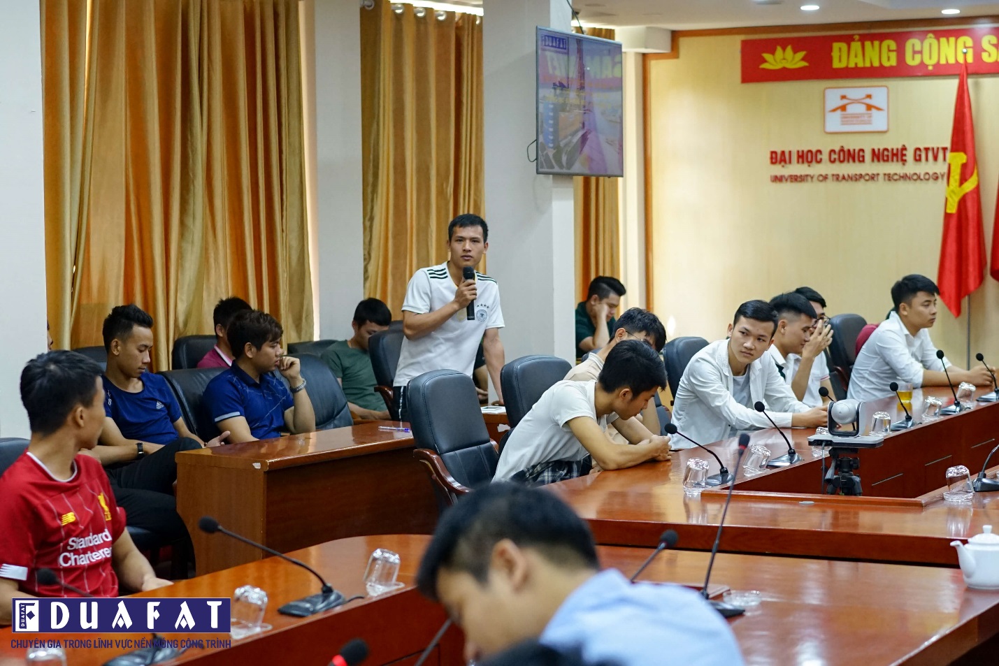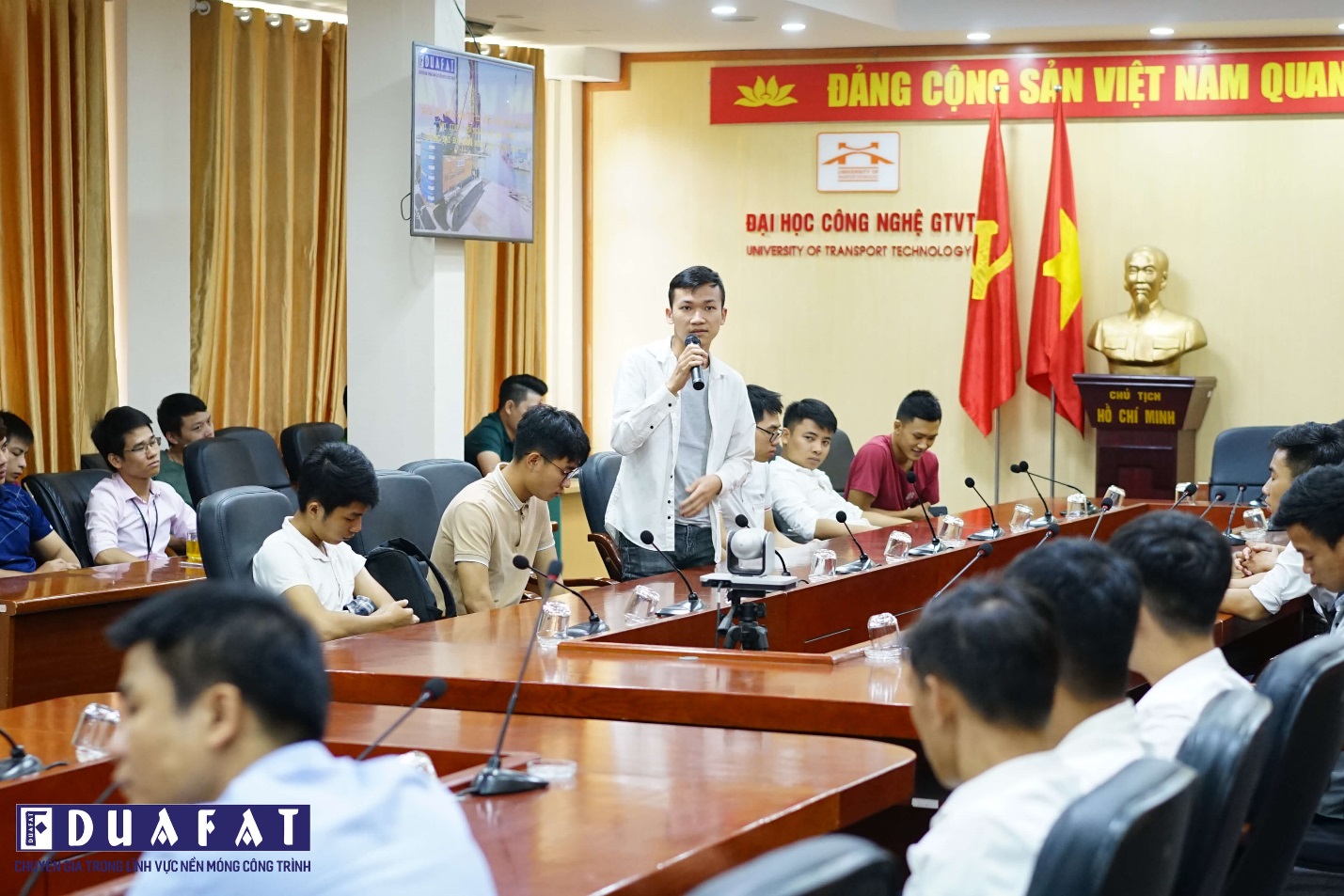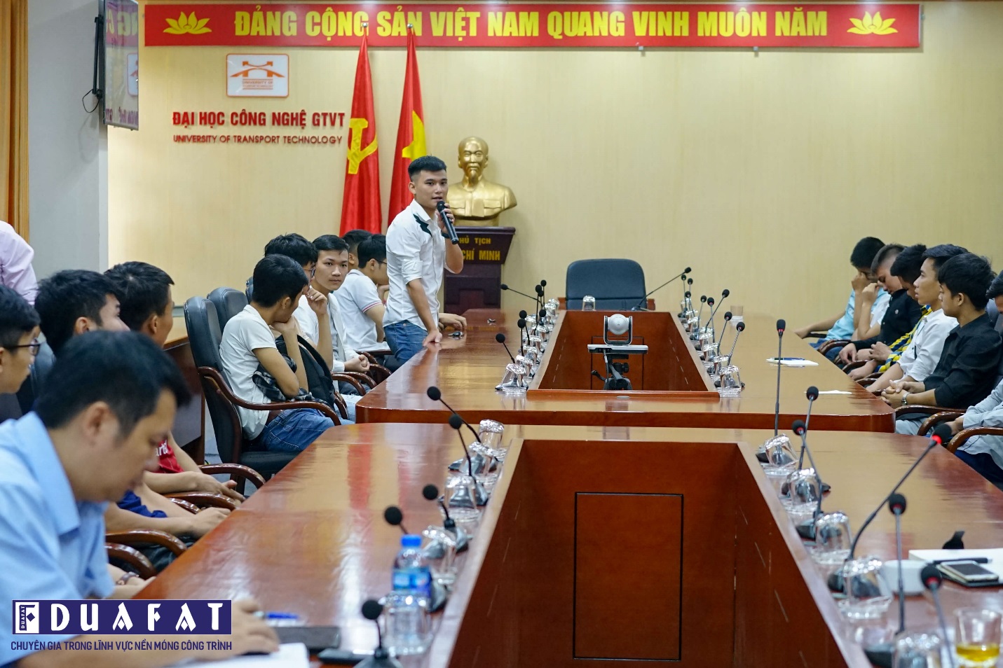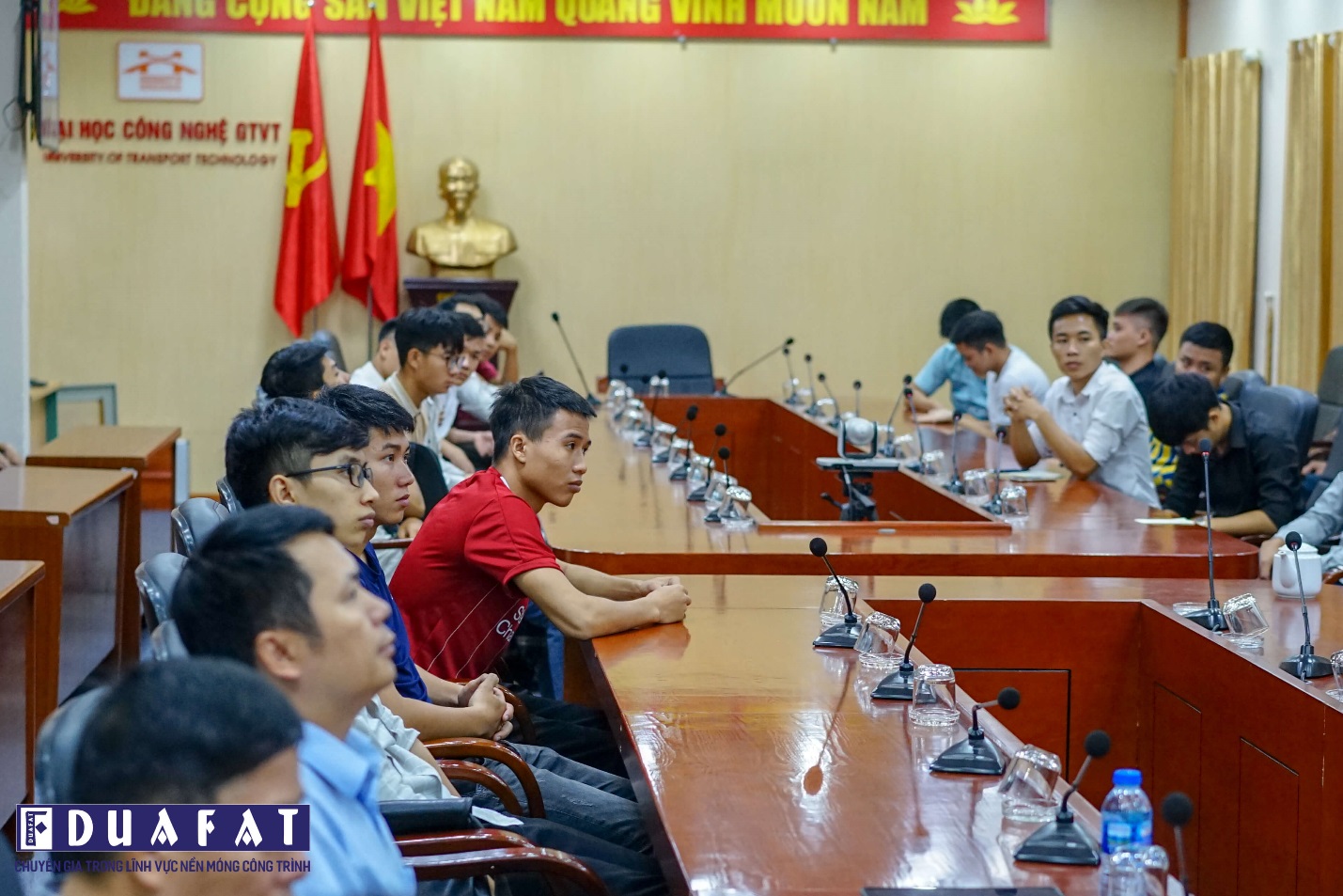 Trong khuôn khổ chương trình hợp tác chiến lược giữa Trường Đại học Công nghệ GTVT và Công ty Cổ phần Nền móng Đua Fat, ngày 05/6/2019 Nhà trường phối hợp với doanh nghiệp tổ chức buổi tọa đàm hướng nghiệp dành cho sinh viên ngành Máy xây dựng - Khoa Cơ khí.