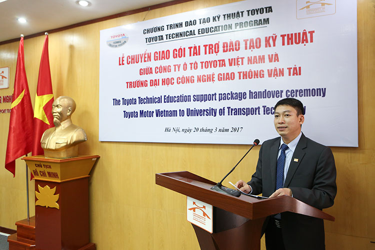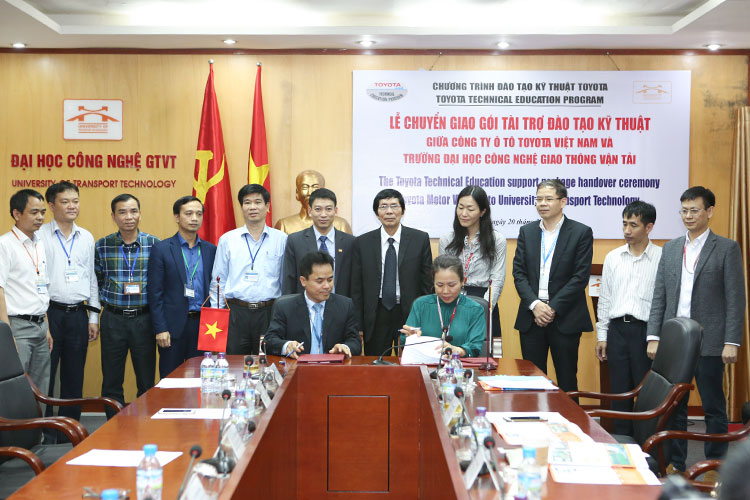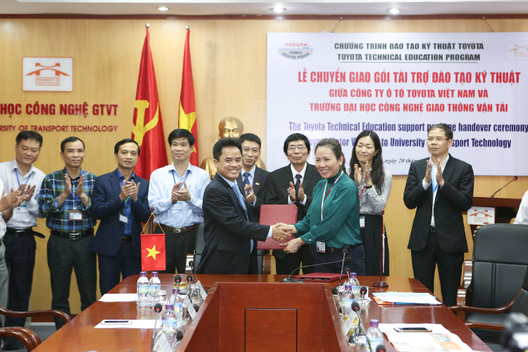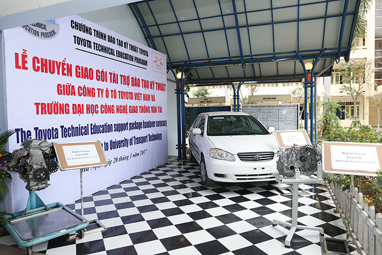 Trong khuôn khổ Chương trình hợp tác đào tạo Kỹ thuật Toyota (T-TEP) đã ký với Trường Đại học Công nghệ GTVT từ năm 2000, nhằm tiếp tục hỗ trợ nhiều hơn nữa công tác đào tạo của Trường, mang tới điều kiện học tập và thực hành tốt nhất cho các học viên, sinh viên, ngày 20/3/2017, Công ty Toyota Việt Nam đã tổ chức Lễ chuyển giao gói hỗ trợ đào tạo kỹ thuật gồm 01 xe Corolla 1.3J; 01 động cơ loại 1NZ và 01 hộp số cho Trường Đại học Công nghệ GTVT.