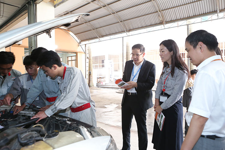 Đoàn đại biểu thăm quan xưởng thực hành và phòng đào tạo lý thuyết T-TP
