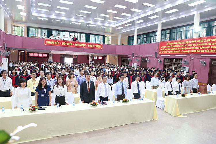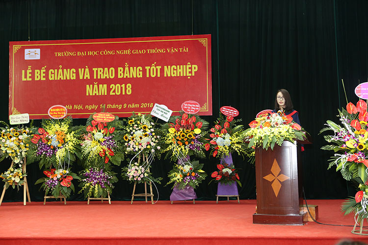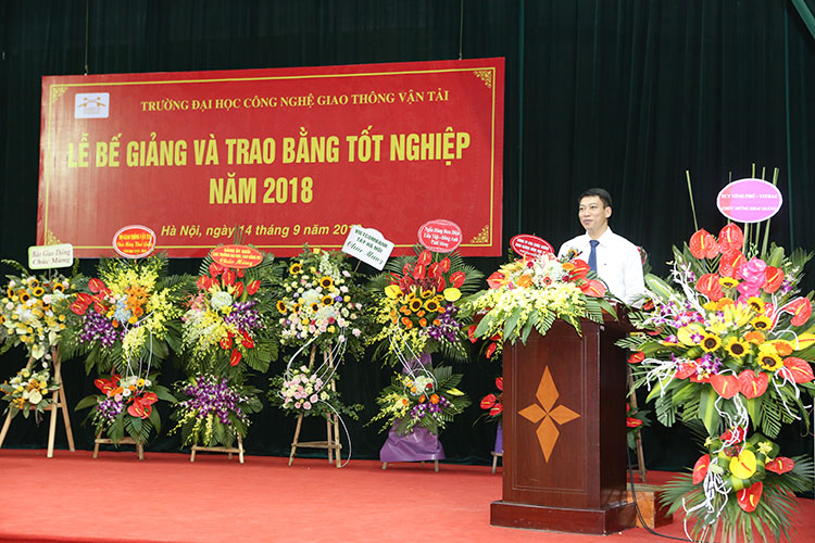 Phát biểu khai mạc buổi lễ, PGS.TS. Đào Văn Đông - Hiệu trưởng Nhà trường, thay mặt Đảng uỷ, Ban Giám hiệu Nhà trường chúc mừng 753 bạn sinh viên đã hoàn thành khóa học, biểu dương và ghi nhận những kết quả học tập, sự nỗ lực rèn luyện vượt qua khó khăn của các tân cử nhân, tân kỹ sư. PGS.TS. Đào Văn Đông cũng gửi lời cảm ơn tới các nhà hảo tâm, các quý phụ huynh đã dành hết tâm trí, kinh tế để hỗ trợ các bạn sinh viên, cho con em chúng ta có được kết quả tốt đẹp ngày hôm nay. PGS.TS. Đào Văn Đông tin tưởng các tân kỹ sư, cử nhân của Nhà trường sẽ đem hết trí tuệ, năng lực, kỹ năng đã được học tập trong Trường để phát huy trong vị trí công tác của mình, đóng góp cho sự phát triển của doanh nghiệp, xã hội và đất nước. Trường Đại học Công nghệ Giao thông vận tải luôn luôn mở rộng cánh cửa đón chào các bạn cựu sinh viên quay trở lại học tập ở những bậc học cao hơn.