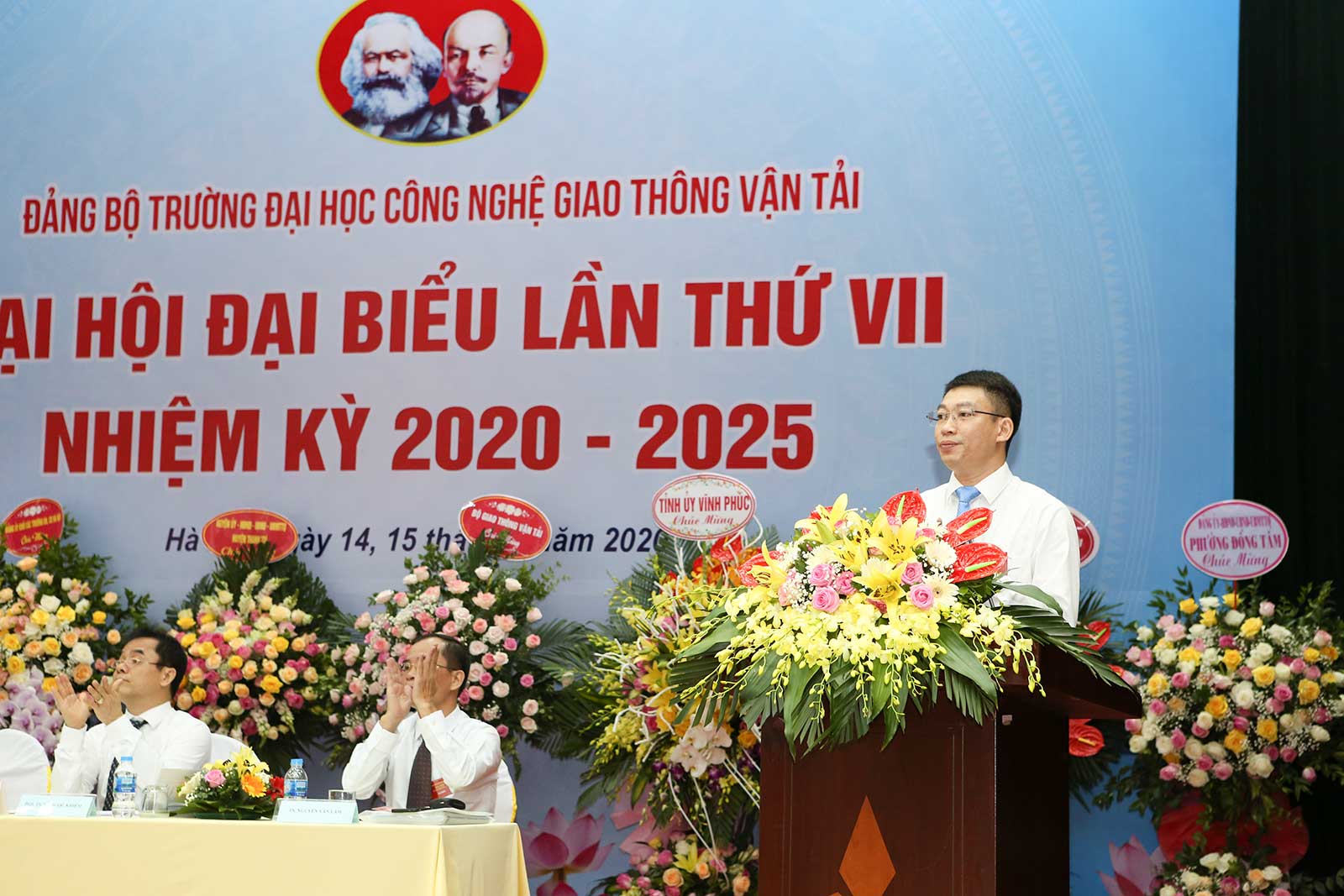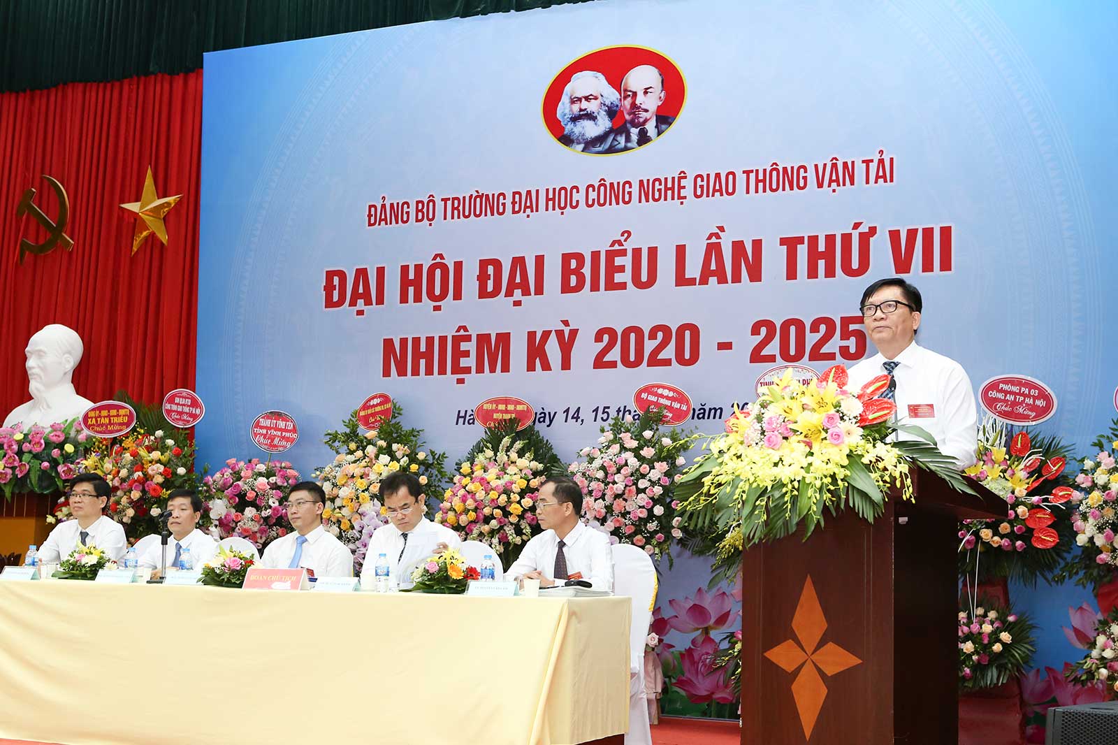 Tại phiên họp chính thức, PGS.TS Đào Văn Đông - Bí thư Đảng ủy nhiệm kỳ 2015-2020 đã trình bày Báo cáo chính trị, trong đó nhấn mạnh, mặc dù trải qua nhiều khó khăn, thách thức nhưng toàn thể Đảng bộ Nhà trường luôn phát huy truyền thống của một Đơn vị Anh hùng lao động, có bề dày truyền thống 75 năm xây dựng và phát triển đã lãnh đạo, chỉ đạo và thực hiện thắng lợi Nghị quyết Đại hội Đảng bộ Trường lần thứ VI đề ra với hầu hết các chỉ tiêu đều đạt và vượt. Dưới sự lãnh đạo của Đảng ủy, Nhà trường tiếp tục ổn định và có bước phát triển vững chắc, xứng đáng với vị thế của một trường đại học có uy tín của ngành GTVT và đất nước. Báo cáo cũng chỉ ra những tồn tại hạn chế, tìm ra nguyên nhân và bài học kinh nghiệm để từ đó đưa ra mục tiêu tổng quát, phương hướng trong nhiệm kỳ 2020-2025 với 5 nhóm mục tiêu cụ thể và 11 nhóm nhiệm vụ, giải pháp thực hiện để xây dựng Nhà trường trở thành một trung tâm đào tạo, nghiên cứu khoa học, chuyển giao công nghệ theo hướng ứng dụng có uy tín trong ngành GTVT và đất nước, nâng cao vị thế và uy tín trên trường quốc tế.