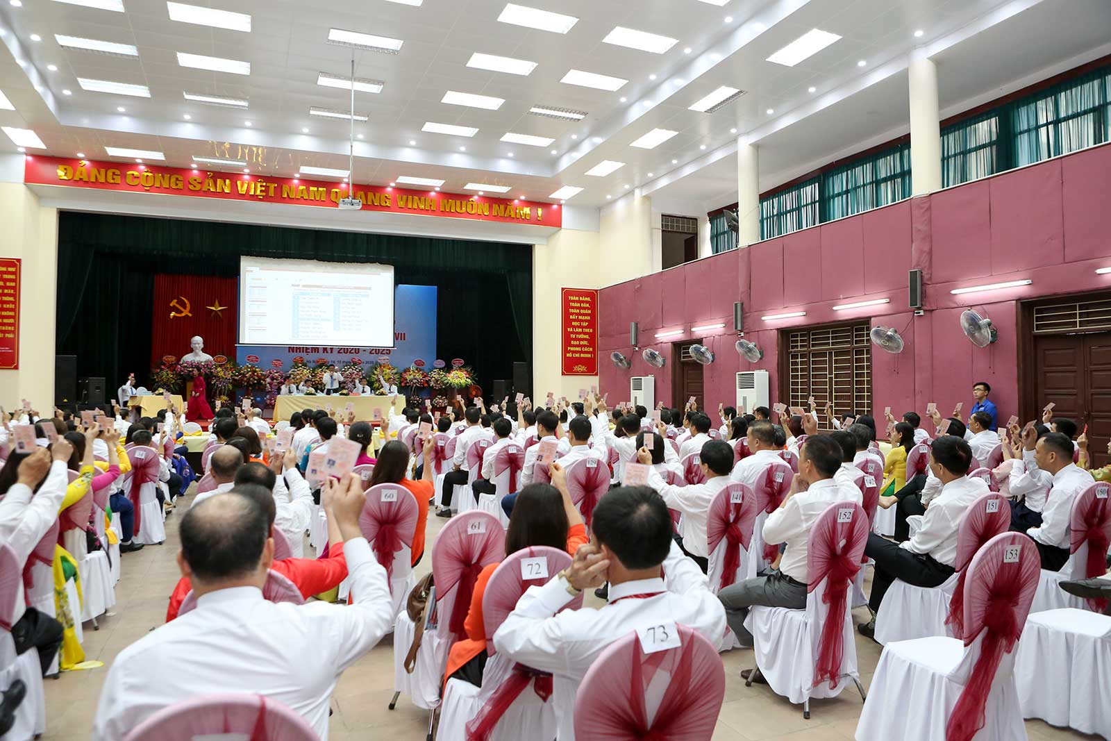 Các đại biểu dự Đại hội biểu quyết tán thành các chỉ tiêu Nghị quyết Đại hội