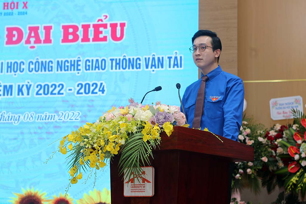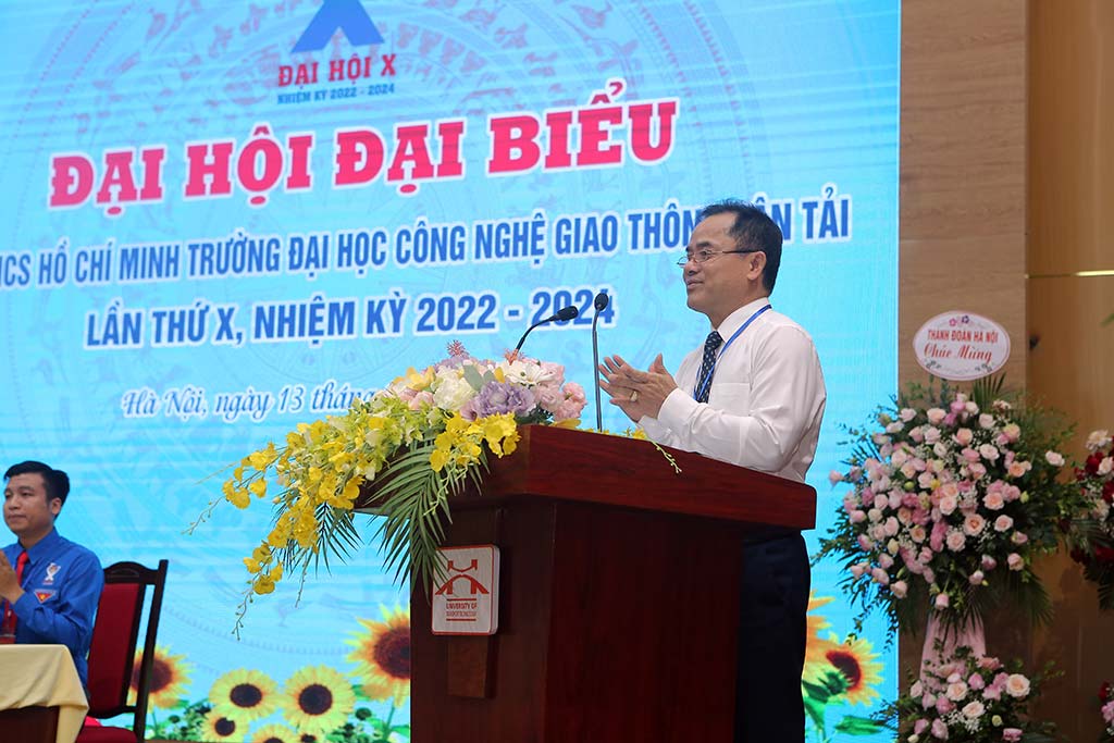 Phát biểu chỉ đạo tại Đại hội, đồng chí Đào Đức Việt – Phó Bí thư Thành đoàn Hà Nội nhấn mạnh: “Trong nhiệm kỳ vừa qua, Đoàn TNCS Hồ Chí Minh trường Đại học Công nghệ Giao thông vận tải đã triển khai thực hiện tốt, có hiệu quả các nội dung mà Nghị quyết Đại hội lần thứ IX đề ra, đồng thời bám sát các chủ trương, định hướng của Thành đoàn Hà Nội và Đảng uỷ Nhà trường, tiếp tục khẳng định được vai trò chính trị của Đoàn Thanh niên, thể hiện được tính sáng tạo, tinh thần xung kích thông qua các chương trình hoạt động cụ thể, phát huy thế mạnh của thanh niên trường Đại học Công nghệ Giao thông vận tải”.