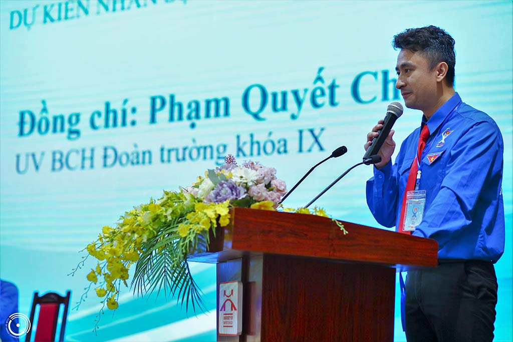 Tại Đại hội, PGS.TS Vũ Ngọc Khiêm, Bí thư Đảng ủy, Chủ tịch Hội đồng Trường thay mặt Tập thể Lãnh đạo Nhà trường ghi nhận và biểu dương những thành tích của Ban chấp hành Đoàn trường đã đạt được trong nhiệm kỳ vừa qua. Trước một nhiệm kỳ có ý nghĩa to lớn, hơn bao giờ hết, vai trò của đoàn viên thanh niên càng phải được phát huy và thể hiện thế mạnh xung kích của mình. Để làm tốt được sứ mạng của tuổi trẻ Nhà trường, PGS.TS Vũ Ngọc Khiêm, Bí thư Đảng ủy, Chủ tịch Hội đồng Trường đề nghị tập thể Ban Chấp hành khóa mới thực hiện một số nội dung về công tác chính trị tư tưởng, công tác chuyên môn nghiệp vụ; tăng cường hoạt động cùa các Liên chi đoàn, chi đoàn; đẩy mạnh công tác xây dựng tổ chức Đoàn và tham gia xây dựng Đảng. Đặc biệt cần tập trung nâng cao hiệu quả của công tác tình nguyện, phục vụ cộng đồng, tạo ra các hoạt động có chiều sâu nhằm giáo dục nhân cách, lòng nhân ái, tinh thần trách nhiệm của tuổi trẻ với xã hội.
