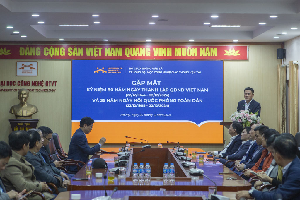 Ngày 20/12/2024, được sự chỉ đạo của Ban chỉ huy quân sự (BCHQS) cấp trên, Đảng ủy, Ban Giám Hiệu, trường Đại học Công nghệ Giao thông vận tải đã tổ chức lễ Gặp mặt kỷ niệm 80 năm Ngày thành lập QĐNDVN (22/12/1944 - 22/12/2024) và 35 năm Ngày Hội QPTD (22/12/1989 - 22/12/2024) trong niềm phấn khởi, tự hào của cả nước. Đây là ngày Hội truyền thống của cả dân tộc, ghi nhận và tôn vinh những đóng góp to lớn của Quân đội trong sự nghiệp xây dựng và bảo vệ vững chắc Tổ quốc Việt Nam.