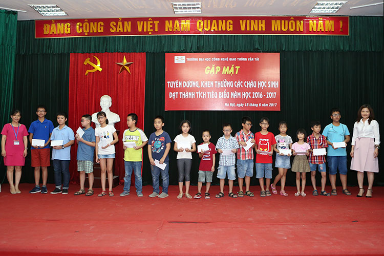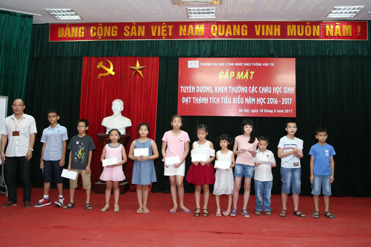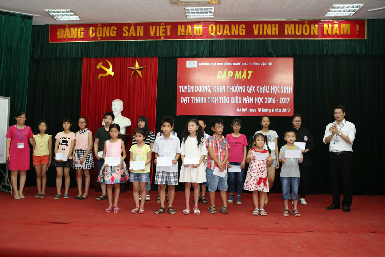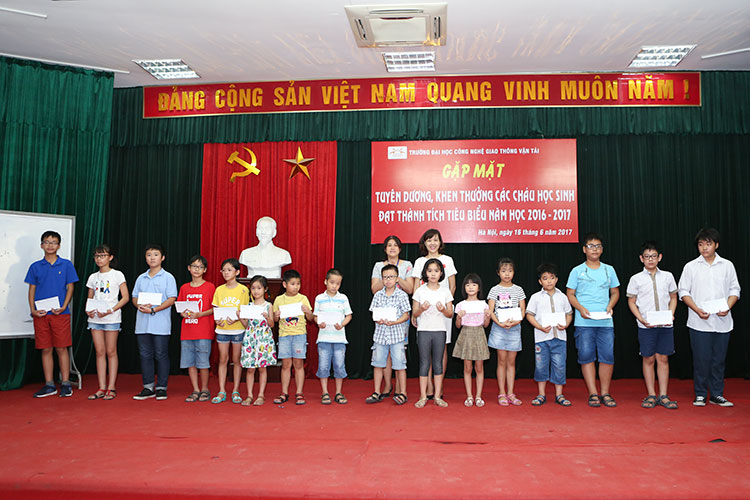 Được sự quan tâm chỉ đạo của Đảng ủy và Ban Giám hiệu Trường Đại học Công nghệ GTVT, sáng ngày 16/6/2017 Ban chấp hành Công đoàn Trường Đại học Công nghệ GTVT đã tổ chức buổi gặp mặt tuyên dương, khen thưởng các cháu học sinh giỏi là con cán bộ, viên chức Nhà trường năm học 2016 - 2017.
