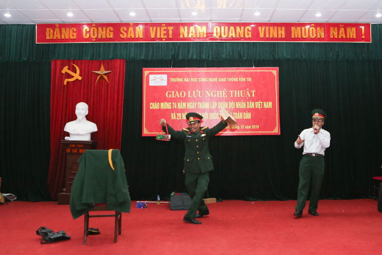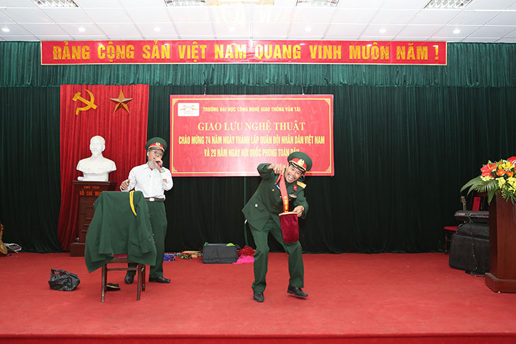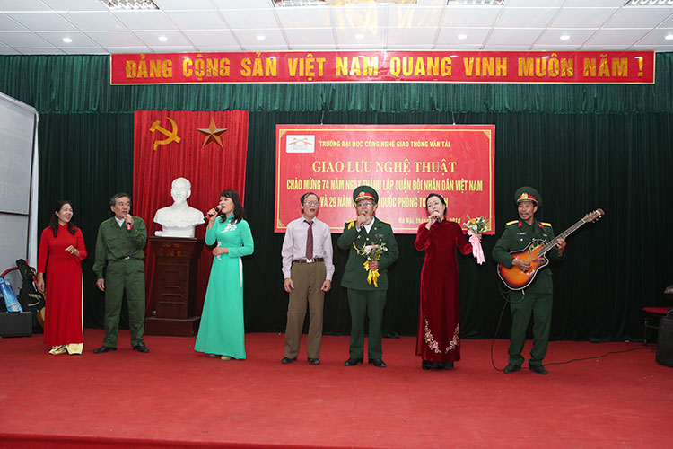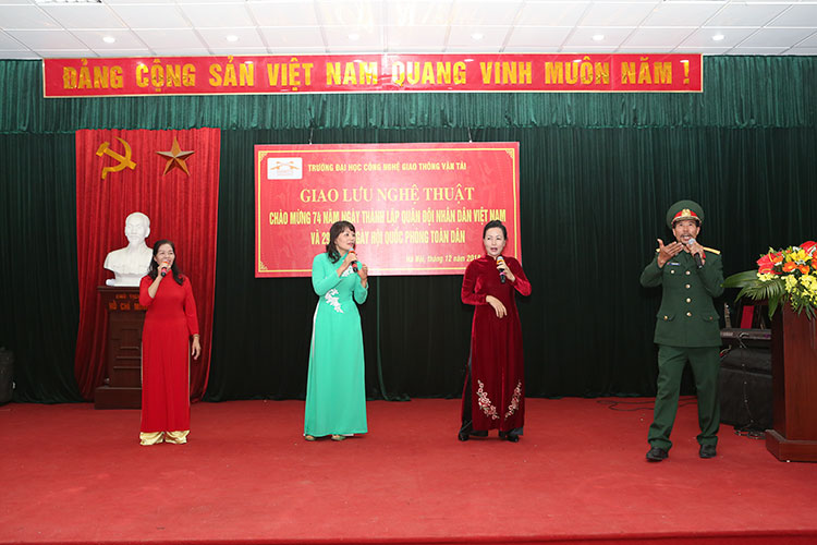 Ngày 21/12/2018, Ban Chỉ huy Quân sự Trường Đại học Công nghệ GTVT đã tổ chức chương trình giao lưu văn nghệ thiết thực chào mừng 74 năm Ngày thành lập Quân đội nhân dân Việt Nam (22/12/1944 - 22/12/2018) và 29 năm Ngày hội Quốc phòng toàn dân (22/12/1989 - 22/12/2018).