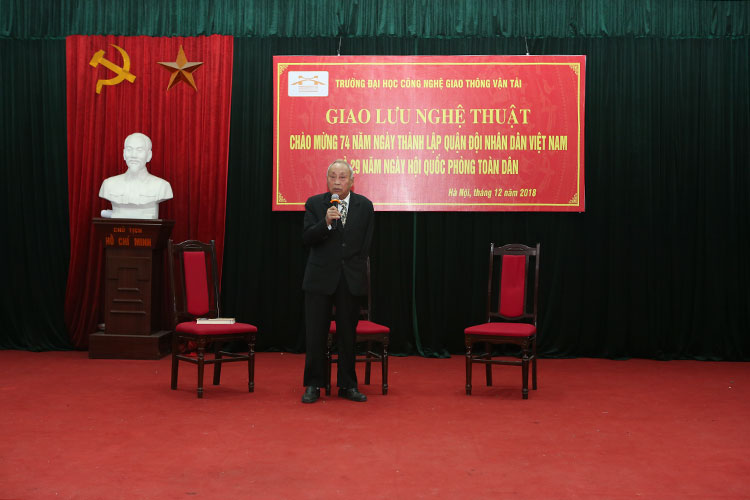Phát biểu khai mạc chương trình, TS. Nguyễn Mạnh Hùng - Chủ tịch Hội đồng trường cho biết trong những năm qua Đảng ủy, Ban Giám hiệu, Ban chỉ huy Quân sự Nhà trường luôn coi trọng công tác giáo dục chính trị, quán triệt kịp thời các chỉ thị, nghị quyết của Đảng ủy, Ban Giám hiệu tới cán bộ, viên chức, người lao động và sinh viên Nhà trường. Công tác giáo dục chính trị, giáo dục quốc phòng cho sinh viên Nhà trường trong những năm qua đã đạt được nhiều kết quả đáng khích lệ, Nhà trường là một trong các đơn vị tiêu biểu trong toàn quốc về giáo dục quốc phòng an ninh và được tự chủ trong công tác giáo dục an ninh quốc phòng. Kỷ niệm 74 năm ngày Thành lập Quân đội nhân dân Việt Nam và 29 năm ngày Hội Quốc phòng toàn dân là dịp ôn lại truyền thống và tôn vinh lực lượng vũ trang, lực lượng dân quân tự về, Nhà trường quyết tâm thực hiện tốt hai nhiệm vụ chiến lược là xây dựng và bảo vệ tổ quốc.