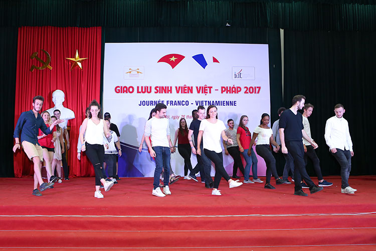 Với hơn 20 tiết mục đặc sắc, đậm chất dân tộc của cả Việt Nam và Pháp do sinh viên của hai bên cùng thực hiện, buổi giao lưu sinh viên Việt – Pháp đã diễn ra vô cùng sôi động, giàu ý nghĩa văn hóa. Kết thúc buổi giao lưu, đại diện cho toàn thể cán bộ, giảng viên của Nhà trường, PGS. TS. Đào Văn Đông đã trao giấy chứng nhận tham gia “Buổi giao lưu văn hóa Việt – Pháp 2017” cho các em sinh viên đến từ Cộng hòa Pháp và gửi lời cảm ơn sâu sắc tới toàn thể cán bộ, giảng viên, sinh viên đã cùng tham gia tổ chức để buổi giao lưu diễn ra thành công, tốt đẹp