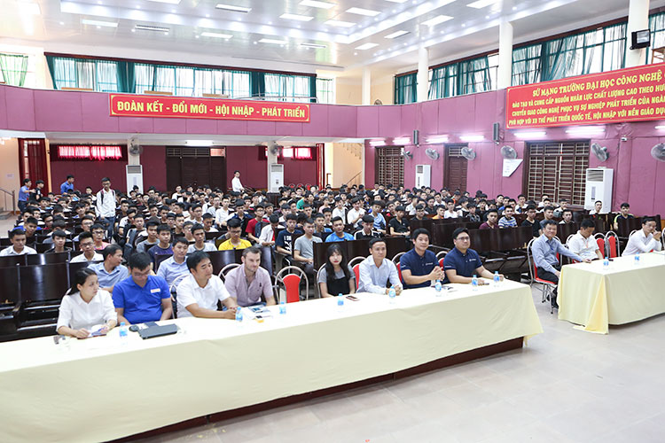 Khác với những năm trước, năm nay bắt đầu áp dụng chương trình đào tạo 04 năm cho khối ngành Cơ khí, rút ngắn thời gian đào tạo so với trước đó nên Nhà trường tổ chức mời những doanh nghiệp đặt hàng đào tạo nguồn nhân lực giao lưu với sinh viên trong tuần sinh hoạt chính trị đầu khóa, nhằm định hướng, tạo động lực và niềm tin cho sinh viên ngay từ đầu.