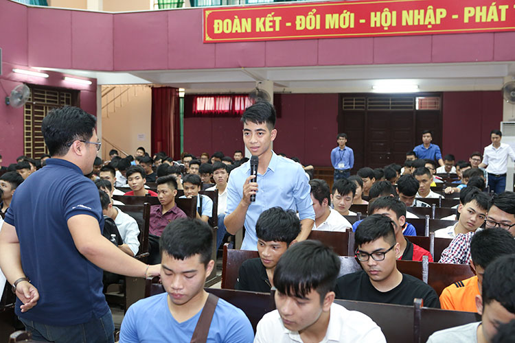 Ông Nguyễn Xuân Thành - Quyền Tổng Giám đốc Tổng Công ty Vĩnh Phú (VITRAC) trao đổi, giao lưu về kinh nghiệm làm việc tại doanh nghiệp, định hướng nghề nghiệp cho các bạn sinh viên