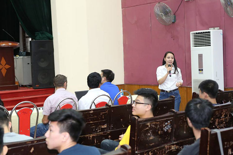 Bà Bùi Thị Huyền - Phòng Tổ chức nhân sự FECON yêu cầu các bạn sinh viên cần nâng cao trình độ ngoại ngữ, khả năng làm việc nhóm, kỹ năng mềm...