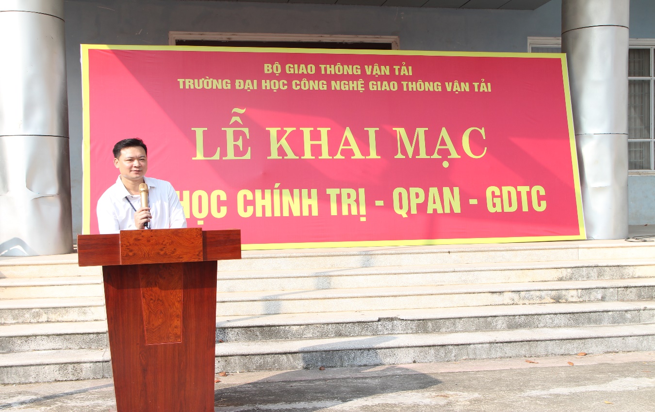 Đặc biệt, đồng chí Trưởng khoa nhấn mạnh trong bài phát biểu: tất cả các thầy, cô giáo thực hiện nhiệm vụ giảng dạy Quốc phòng an ninh và Giáo dục thể chất phải phát huy hết trách nhiệm của mình về chuyên môn, dạy chữ, dạy người, quan tâm đến các em về chế độ trong ngày, trong tuần và trong ký túc xá; quản lý giờ lên lớp, giờ nghỉ và bảo vệ các em trước các tệ nạn xã hội; đồng thời động viên khuyến khích tất cả các em ý thức, trách nhiệm và tự nâng cao thành tích trong học tập, không vi phạm nội quy, quy chế học tập; không để xẩy ra mâu thuẫn, mất đoàn kết nội bộ trong sinh viên làm ảnh hưởng đến uy tín của nhà giáo và nhà trường. Trong kỳ học Quân sự và Giáo dục thể chất, rất mong thầy cô giáo quyết tâm, nỗ lực cùng các em hoàn thiện tốt khóa huấn luyện, học tập ý nghĩa này.