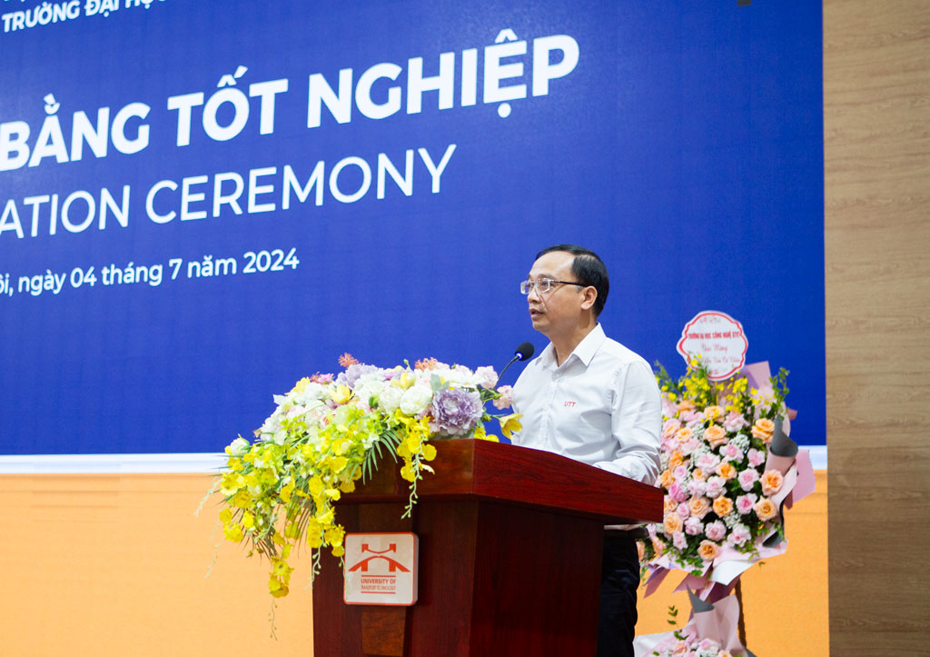 PGS. TS. Nguyễn Hoàng Long – Hiệu trưởng Nhà trường phát biểu tại Lễ trao bằng tốt nghiệp
