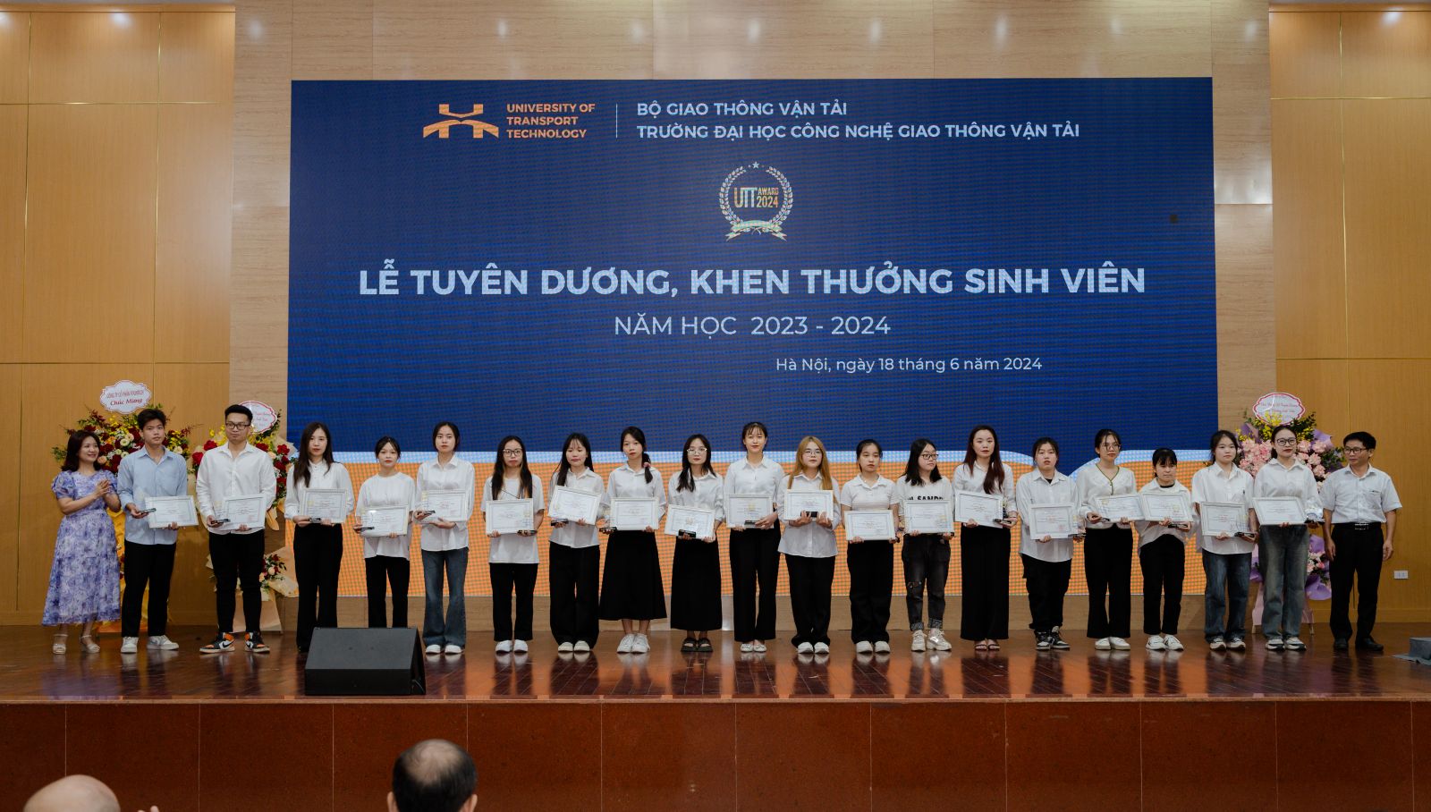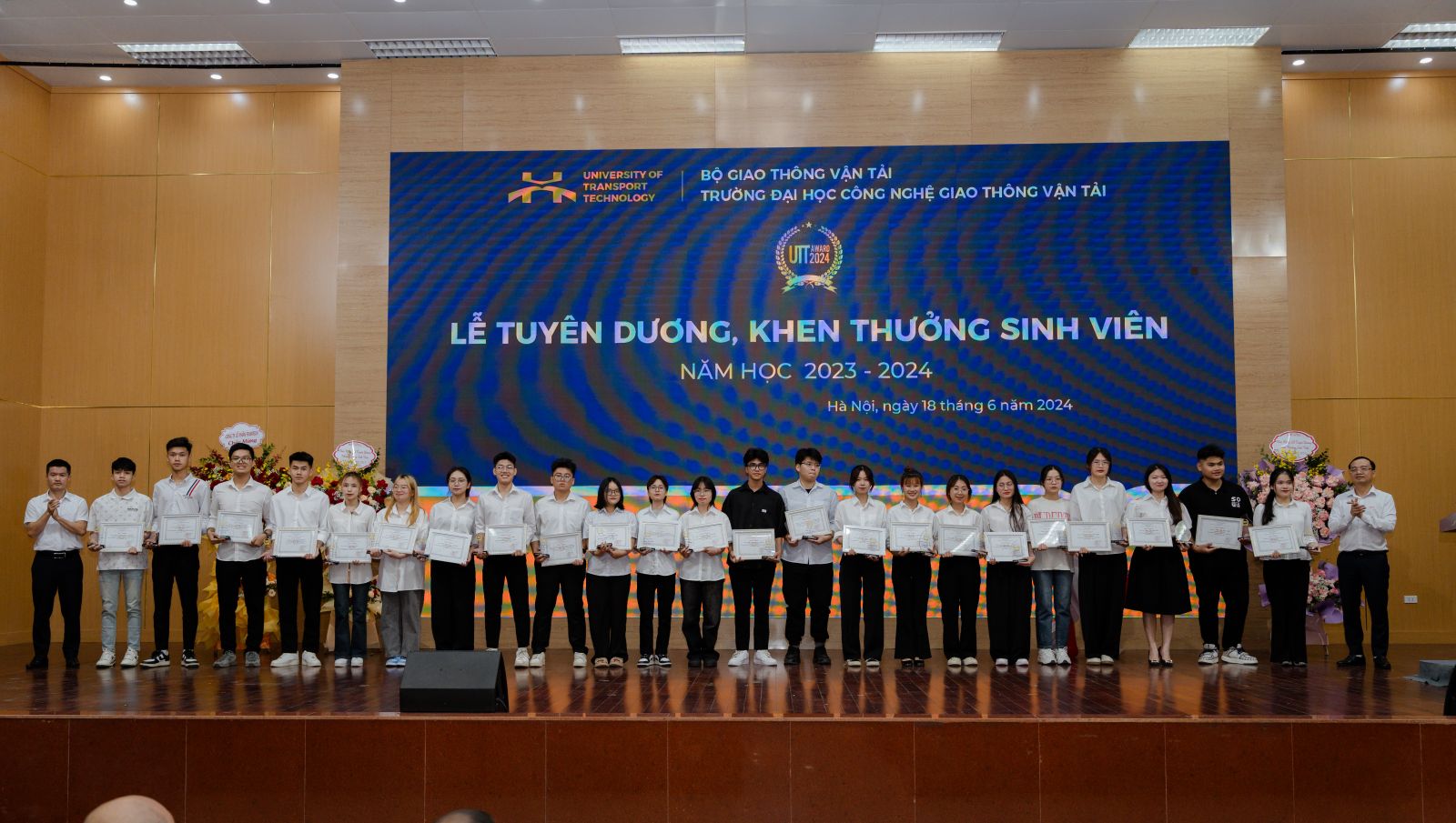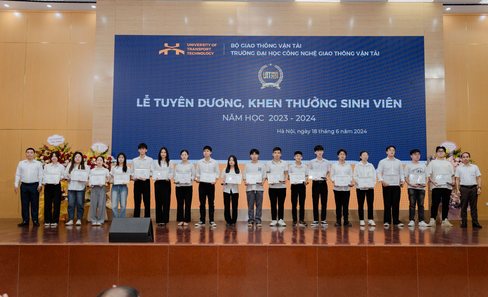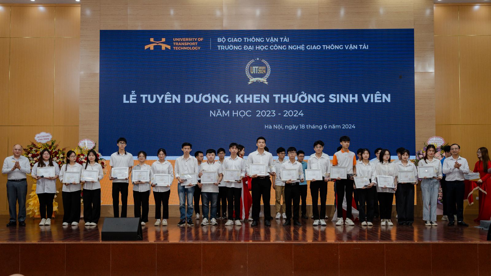 Nhằm động viên, khích lệ các sinh viên có thành tích học tập tốt trong năm học 2023-2024, từ đó lan tỏa tinh thần học tập, rèn luyện, nghiên cứu khoa học (NCKH), đổi mới sáng tạo (ĐMST) tới toàn thể sinh viên, sáng ngày 18/6, tại cơ sở đào tạo Hà Nội, Trường Đại học Công nghệ GTVT tổ chức Lễ tuyên dương, khen thưởng sinh viên năm học 2023-2024.