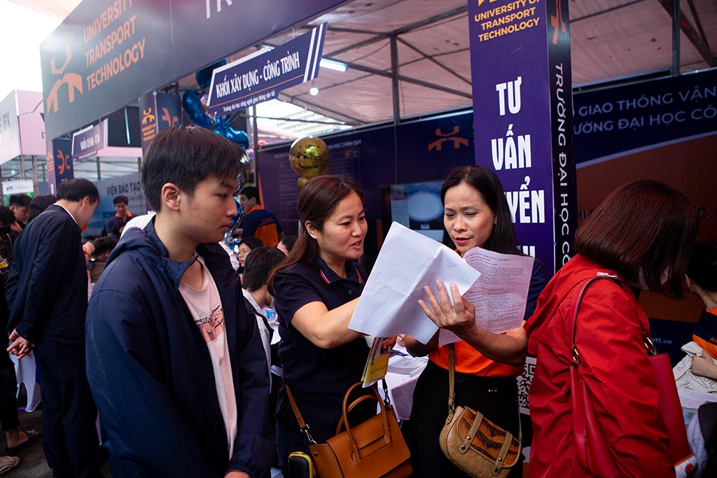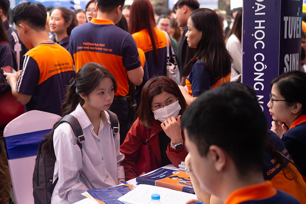 Phụ huynh và học sinh được đội ngũ cán bộ, giảng viên Trường Đại học Công nghệ GTVT tư vấn nhiệt tình