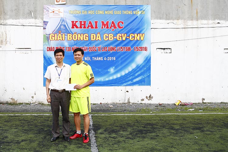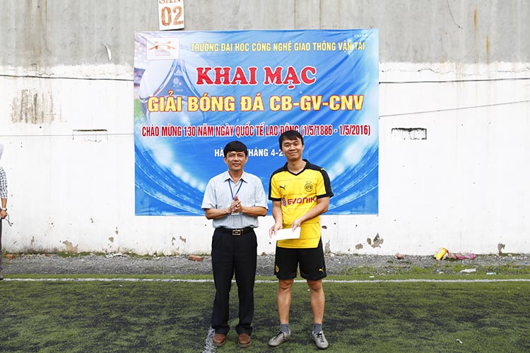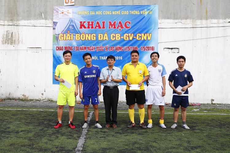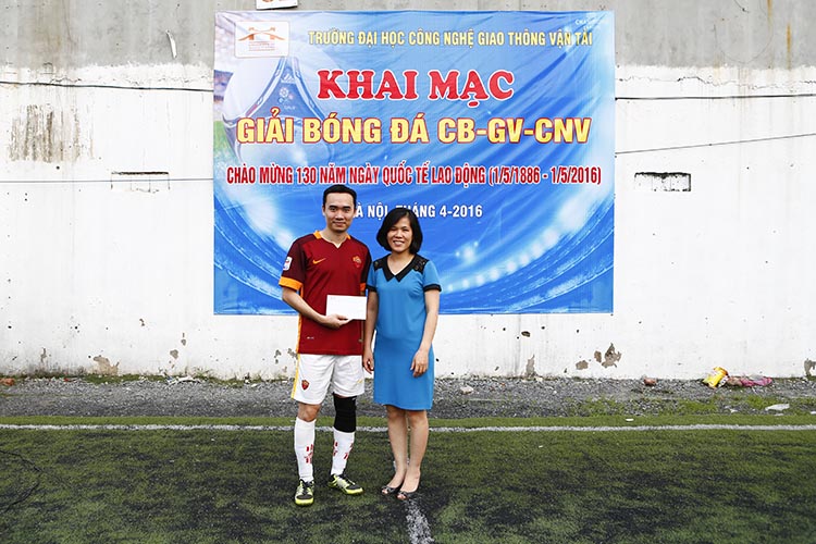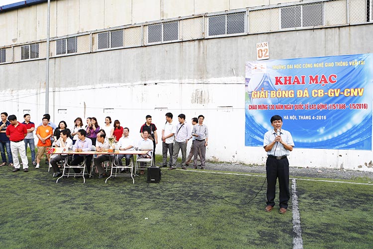 Tại buổi lễ khai mạc Giải bóng đá CN-VC Cơ sở đào tạo Hà Nội, đồng chí Trần Văn Bình - Chủ tịch Công đoàn Trường đã ôn lại lịch sử ngày Quốc tế Lao động 1/5, ý nghĩa của việc Chủ tịch Hồ Chí Minh ký sắc lệnh 56 ngày 29/4/1946 và phát động “Tháng Công nhân” năm 2016, kêu gọi toàn thể cán bộ công đoàn, đoàn viên, CNVCLĐ toàn Trường tích cực thi đua lao động sản xuất góp phần thực hiện thắng lợi các nhiệm vụ của ngành, của Trường. Đồng chí kêu gọi, hưởng ứng “Tháng công nhân” 2016, mỗi CĐCS hãy tổ chức thực hiện ít nhất một hoạt động cụ thể để mang lại lợi ích thiết thực cho đoàn viên, CNVCLĐ.