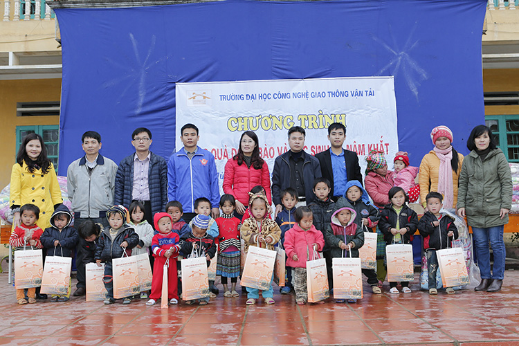 Thực hiện chỉ đạo của Bộ trưởng Bộ Giao thông vận tải và Chủ tịch Công đoàn Giao thông vận tải Việt Nam về việc “Quyên góp, ủng hộ quần, áo ấm cho đồng bào nghèo các tỉnh miền núi, vùng sâu, vùng xa”. Từ ngày 28/12 – 30/12/2015, Ban Giám hiệu, Ban chấp hành Công đoàn Trường Đại học Công nghệ GTVT đã cử đoàn công tác thay mặt cho cán bộ, viên chức Nhà trường đến xã Nậm Khắt, huyện Mù Cang Chải, tỉnh Yên Bái để tặng quà cho bà con và các cháu học sinh.