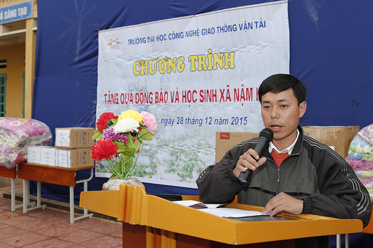 Thay mặt cho lãnh đạo xã Nậm Khắt, đồng chí Lý A Sử, Phó Chủ tịch xã đã gửi lời cảm ơn sự quan tâm, chia sẻ, tinh thần tương thân tương ái của Đảng ủy, Ban Giám hiệu, BCH Công đoàn và tập thể cán bộ, giảng viên trường Đại học Công nghệ GTVT. Những cuốn vợ, những chiếc chăn, tấm áo đã thêm ấm lòng bà con và các em học sinh xã Nậm Khắt, huyện Mù Cang Chải.