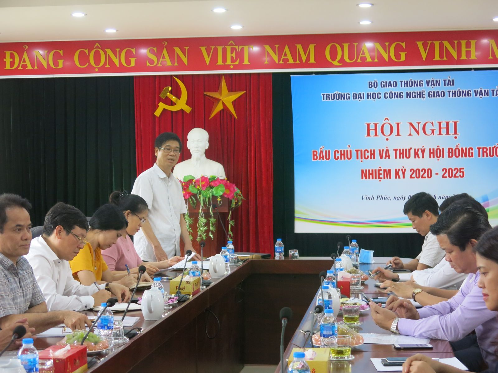 Ngày 5/8/2020 tại Cơ sở đào tạo Vĩnh Phúc, Hội đồng Trường trường Đại học Công nghệ GTVT đã tổ chức Hội nghị bầu Chủ tịch và Thư ký Hội đồng Trường nhiệm kỳ 2020-2025.