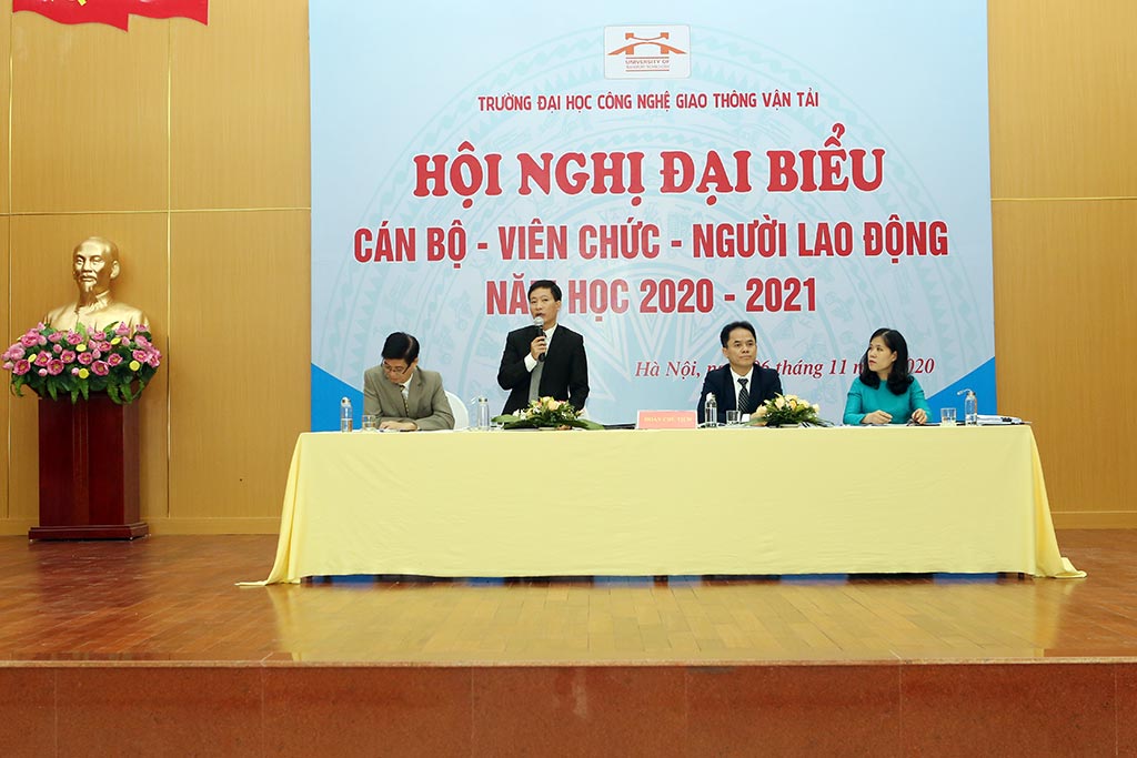 Ngày 06/11/2020, Trường Đại học Công nghệ Giao thông vận tải đã tổ chức Hội nghị đại biểu Cán bộ - Viên chức - Người lao động năm học 2020-2021 nhằm tổng kết các lĩnh vực hoạt động của Nhà trường trong năm học 2019-2020, đánh giá những thành tích đạt được và những điểm tồn tại hạn chế, phân tích nguyên nhân và rút ra bài học kinh nghiệm cho việc xây dựng và triển khai phương hướng hoạt động năm học 2020-2021.