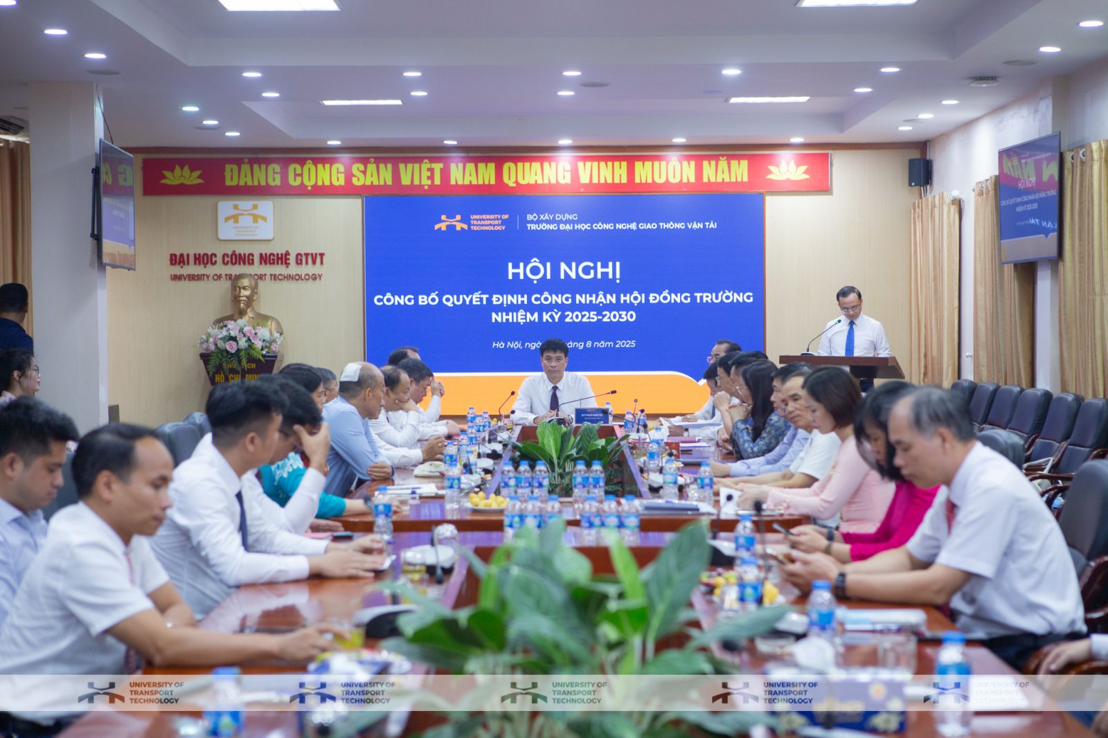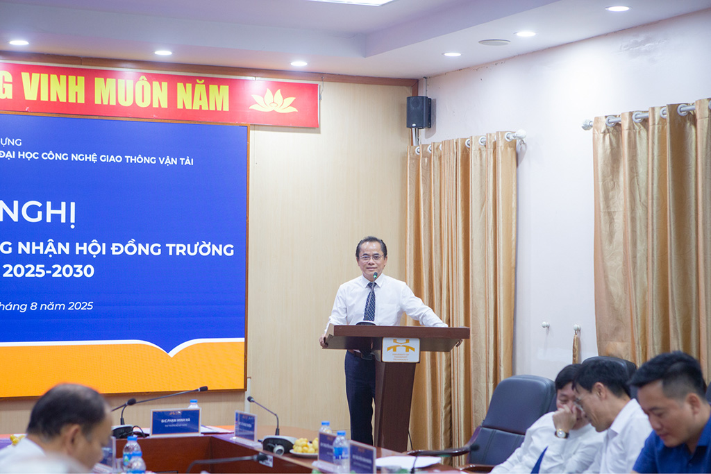 Ngày 15/8/2025, Trường Đại học Công nghệ Giao thông vận tải (UTT) long trọng tổ chức Hội nghị “Công bố quyết định công nhận Hội đồng trường nhiệm kỳ 2025-2030”. Đây là sự kiện có ý nghĩa quan trọng, đánh dấu bước phát triển mới trong công tác quản trị đại học và khẳng định vai trò, trách nhiệm của Hội đồng trường trong việc định hướng chiến lược phát triển toàn diện Nhà trường.