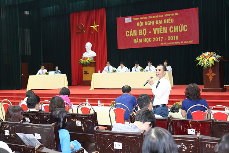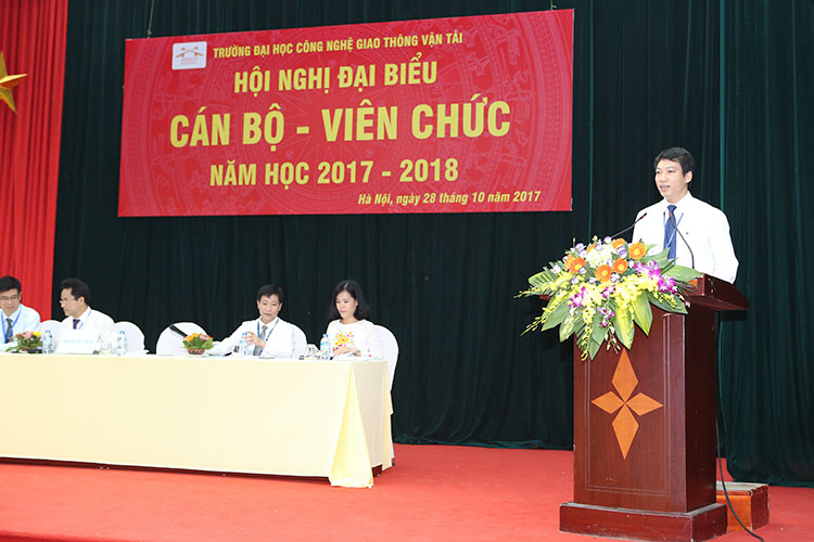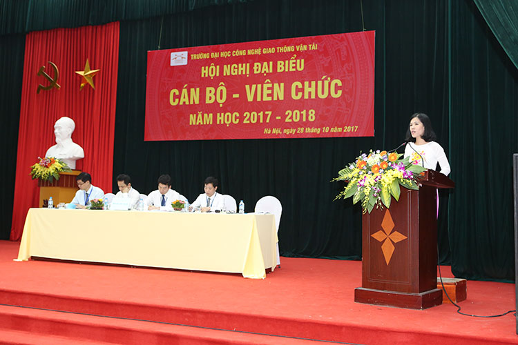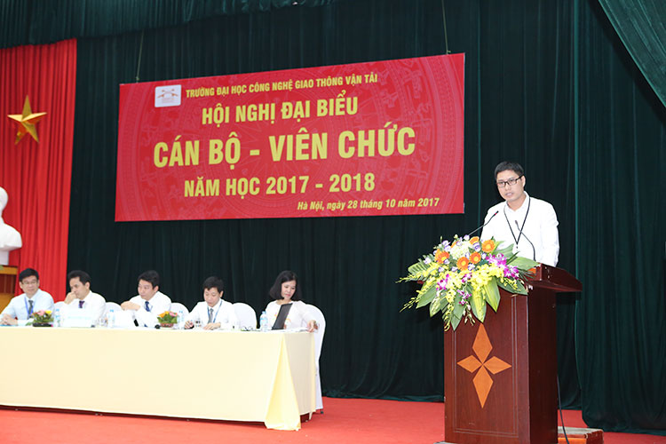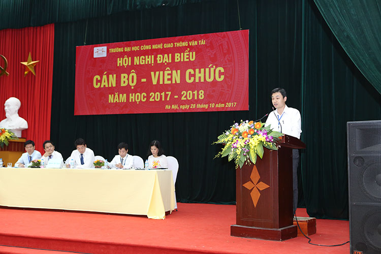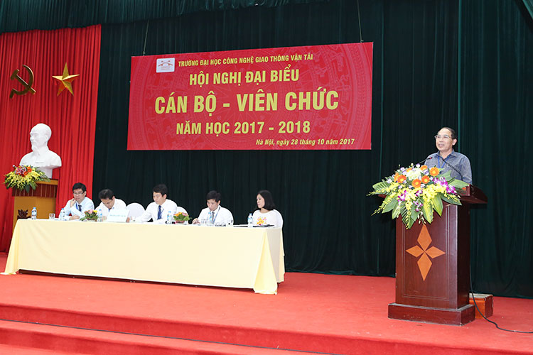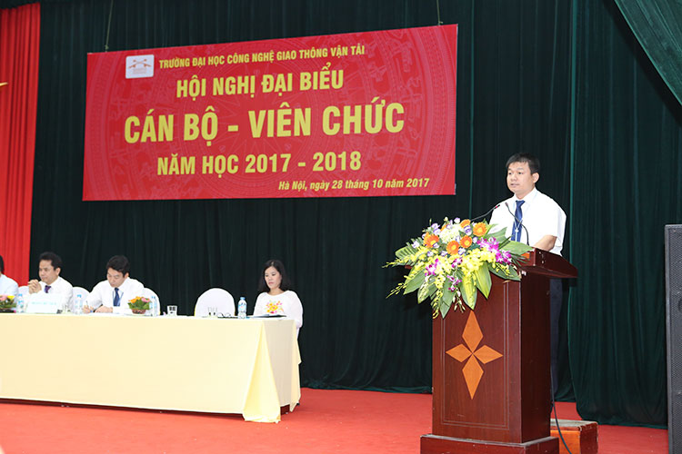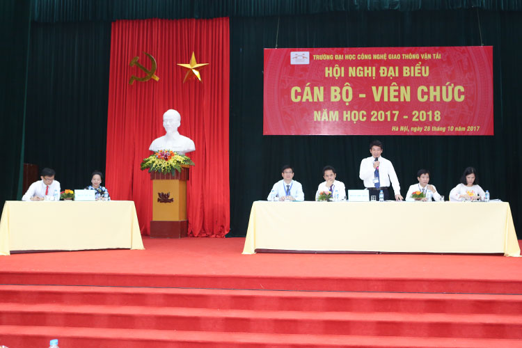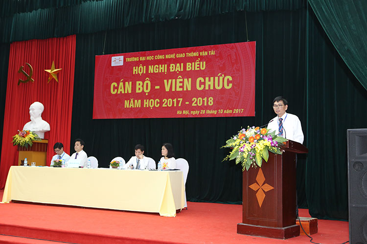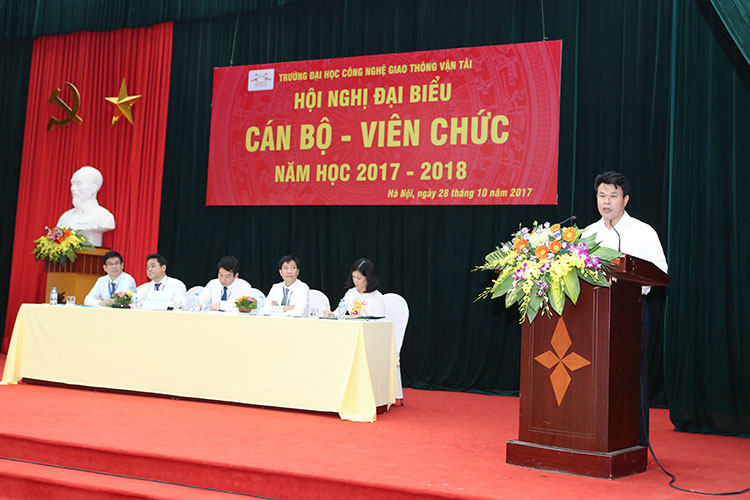 Ngày 28/10/2017 tại Phân hiệu Hà Nội, Trường Đại học Công nghệ Giao thông vận tải đã tổ chức Hội nghị đại biểu Cán bộ - Viên chức năm học 2017 - 2018 nhằm đánh giá, thảo luận kết quả thực hiện Nghị quyết Hội nghị Cán bộ, Viên chức năm học 2016 - 2017, đề ra phương hướng, nhiệm vụ năm học 2017 - 2018.
