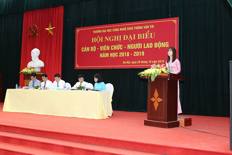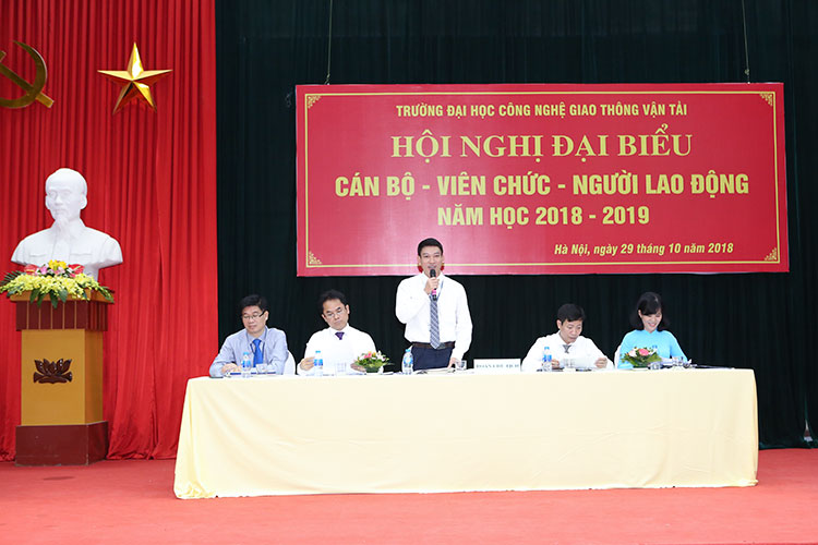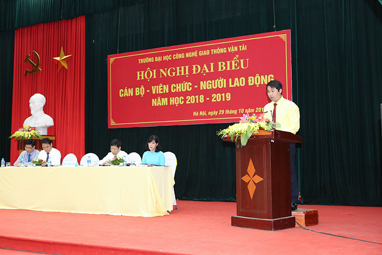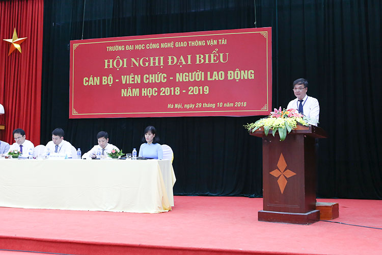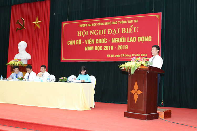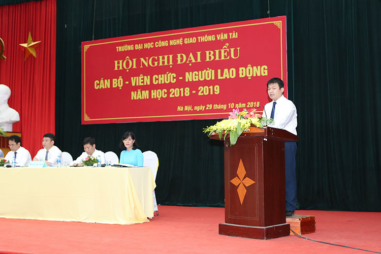 Ngày 29/10/2018, tại Phân hiệu Hà Nội, Trường Đại học Công nghệ Giao thông vận tải đã tổ chức Hội nghị đại biểu Cán bộ - Viên chức - Người lao động năm học 2018 - 2019 nhằm tổng kết các lĩnh vực hoạt động của Nhà trường trong năm học 2017 - 2018, đánh giá những thành tích đạt được và những điểm tồn tại hạn chế, phân tích nguyên nhân và rút ra bài học kinh nghiệm cho việc xây dựng và triển khai phương hướng hoạt động năm học 2018 - 2019.