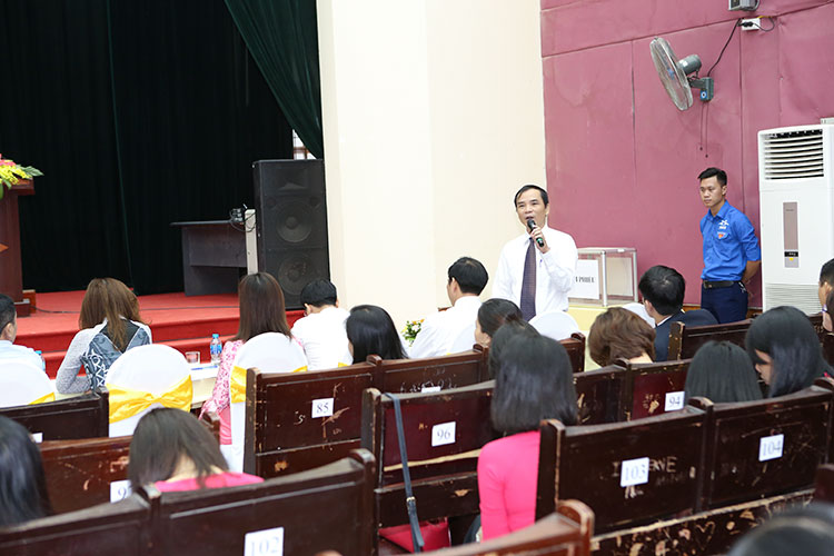 Đại diện các Phòng, ban chức năng trả lời các thắc mắc của cán bộ, viên chức, người lao động tại hội nghị
