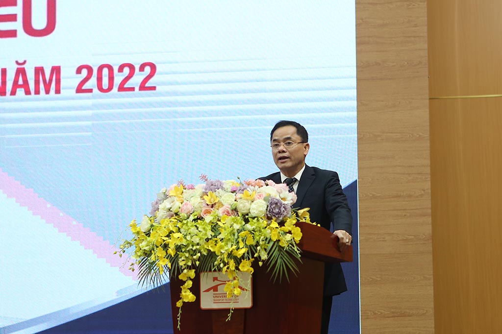 PGS.TS. Nguyễn Hoàng Long, Hiệu trưởng Nhà trường cho biết, trong bối cảnh nhiều khó khăn, thách thức, đặc biệt ảnh hưởng của đại dịch Covid-19 kéo dài tác động mạnh mẽ, Nhà trường đã linh hoạt, chủ động chuyển trạng thái để thích ứng tình hình mới và đã cơ bản hoàn thành các nhiệm vụ trọng tâm đặt ra trong năm học. Công tác tuyển sinh thực hiện đúng quy chế, đảm bảo chỉ tiêu theo đề án tuyển sinh; công tác tư vấn tuyển sinh triển khai đa dạng, sâu sát nên đạt hiệu quả cao, điểm trúng tuyển nhiều ngành cao hơn năm trước. Thực hiện rà soát, điều chỉnh trên 50% chương trình đào tạo (CTĐT); tiếp cận đánh giá chuẩn đầu ra theo ma trận CDIO với 04 CTĐT; đề xuất mở mới 03 CTĐT tiến sĩ; 02 CTĐT thạc sĩ; 01 CTĐT đại học nhằm đáp ứng nhu cầu xã hội. Kế hoạch đào tạo được điều chỉnh một cách linh hoạt, kịp thời, thích ứng với tình hình diễn biến phức tạp, khó lường của dịch Covid-19. Kịp thời ban hành các quy định, hướng dẫn tổ chức hoạt động dạy, học và đánh giá trực tuyến, đảm bảo chất lượng đào tạo đáp ứng được yêu cầu đề ra trong bối cảnh khó khăn chung khi thầy, cô và người học không trực tiếp đến Trường.