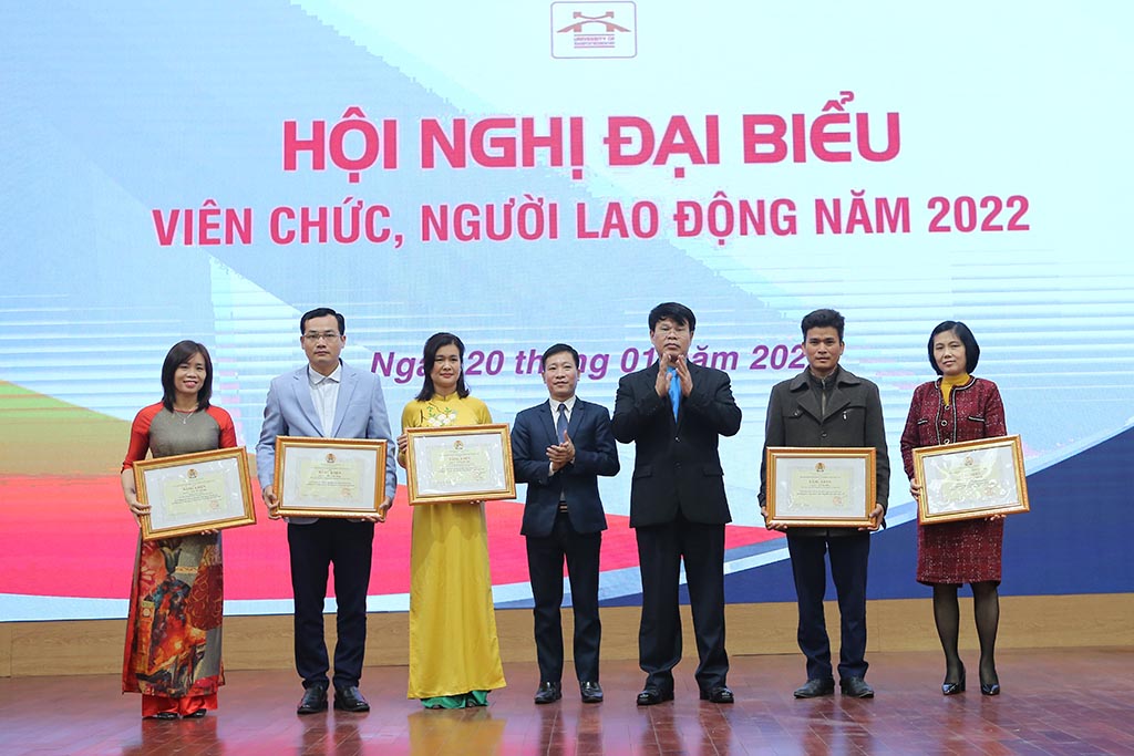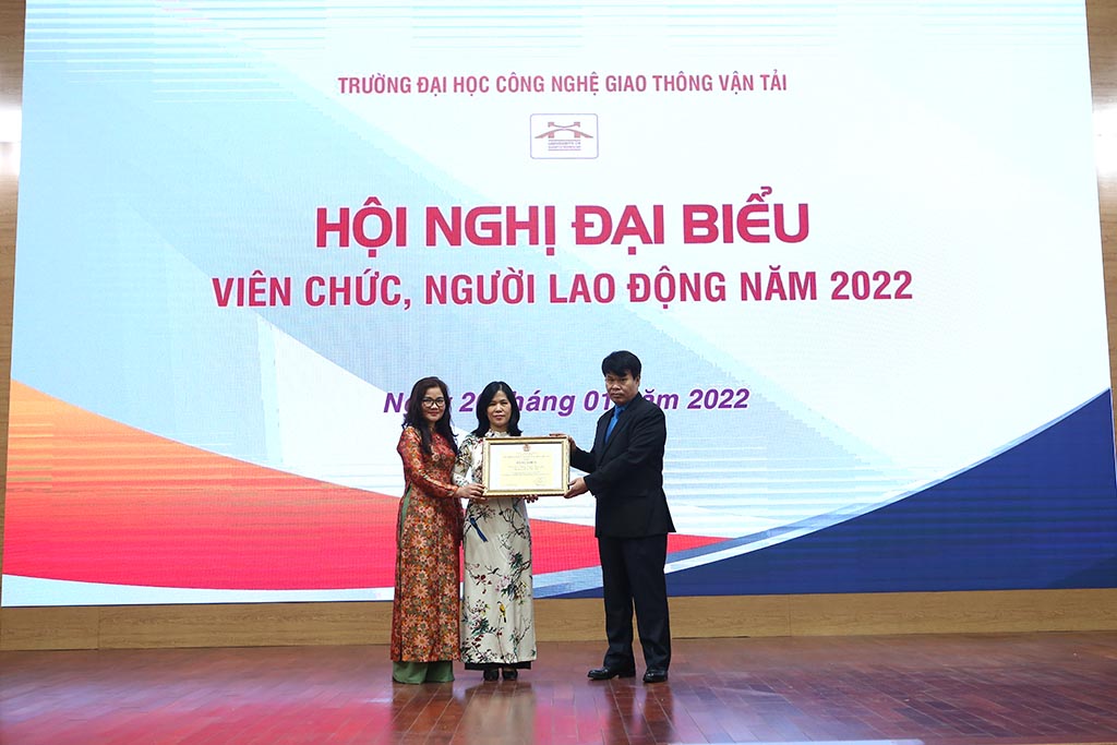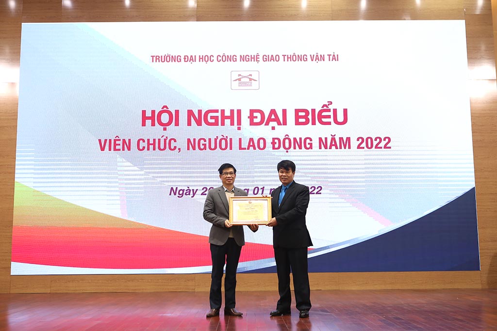 Tại Hội nghị, Quỹ Từ thiện Công đoàn GTVT Việt Nam đã trao 30 triệu đồng hỗ trợ người lao động có hoàn cảnh khó khăn nhân dịp Tết nguyên đán Nhâm Dần 2022. Đồng thời, lãnh đạo Bộ GTVT và lãnh đạo Nhà trường cũng trao tặng bằng khen cho các cá nhân, tập thể có thành tích xuất sắc trong năm vừa qua.