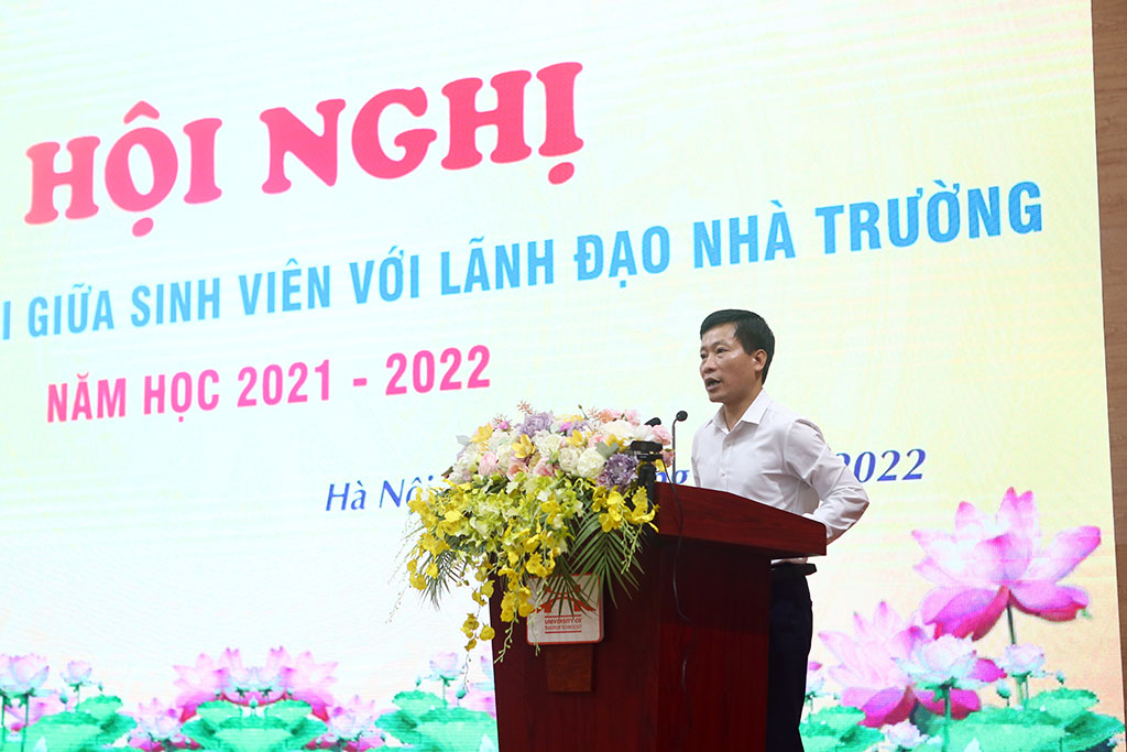 Phát biểu tại Hội nghị, PGS.TS Nguyễn Hoàng Long cho biết, thực hiện quy chế dân chủ của Nhà trường, Hội nghị gặp gỡ đối thoại giữa sinh viên với Lãnh đạo Nhà trường là hoạt động thường niên được tổ chức nhằm mục tiêu nâng cao chất lượng dạy và học cũng như hoạt động nghiên cứu khoa học, đặc biệt là công tác phục vụ của Nhà trường đối với người học. Thông qua Hội nghị, Nhà trường nắm bắt được tâm tư, nguyện vọng, đề xuất, kiến nghị của sinh viên từ đó có những điều chỉnh giúp hoạt động của Nhà trường ngày càng tốt hơn.