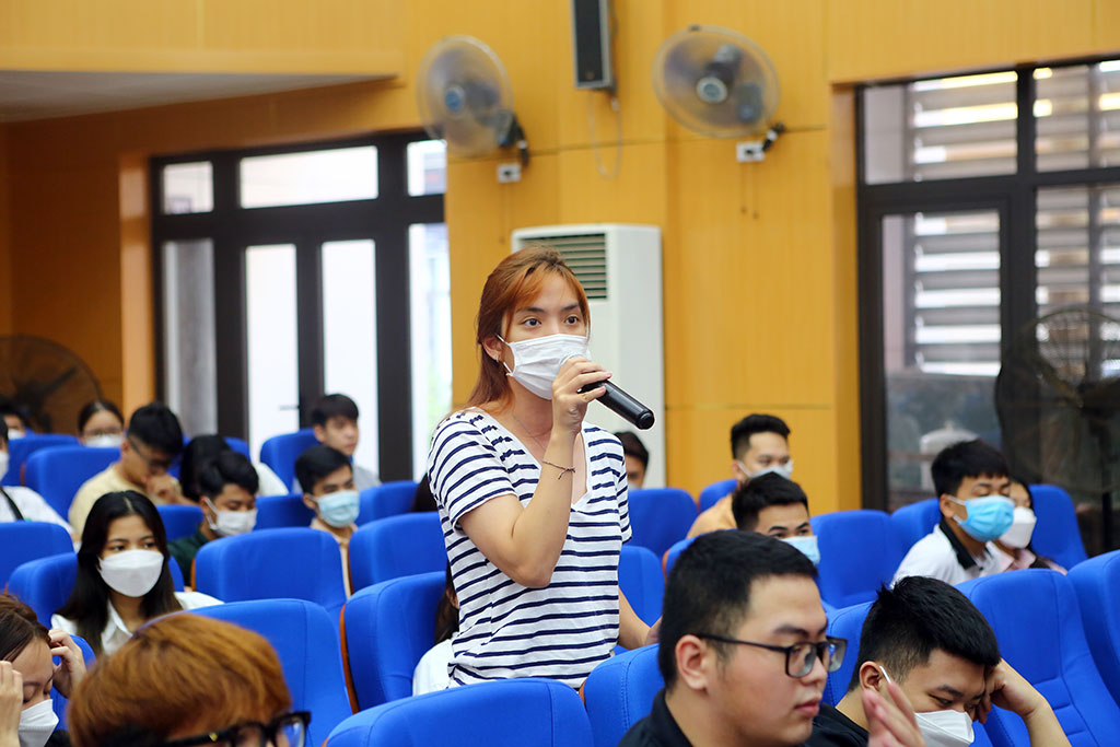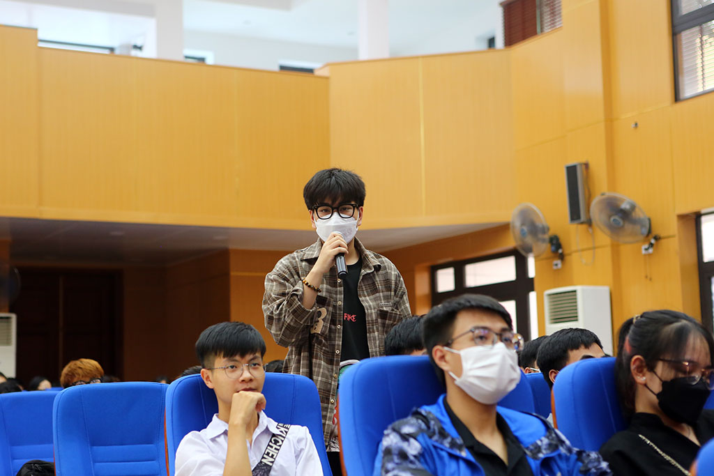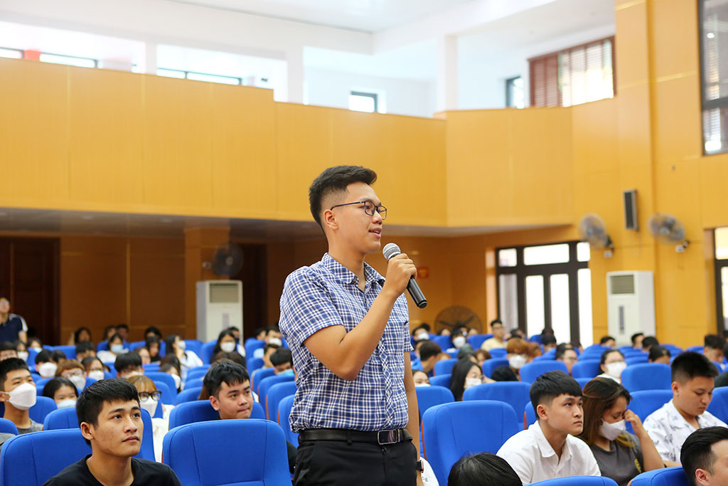 Nhiều sinh viên đã trực tiếp đặt câu hỏi của mình cho Lãnh đạo Nhà trường ngay tại Hội nghị