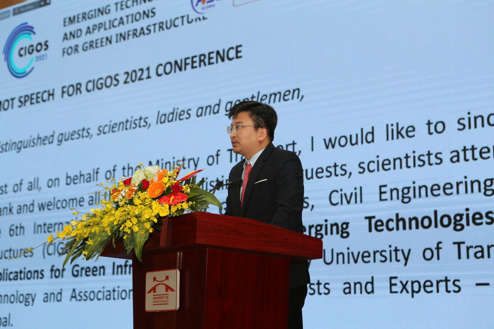 Phát biểu tại Hội nghị, TS Lê Văn Dương, Vụ trưởng Vụ Khoa học Công nghệ, Bộ Giao thông vận tải đánh giá cao Trường Đại học Công nghệ GTVT là một trong những trường đại học lớn của ngành GTVT, "vừa thực hiện sứ mệnh đào tạo nguồn nhân lực chất lượng cao cho Ngành, nhưng cũng rất chủ động tích cực trong việc nghiên cứu, ứng dụng những tiến bộ khoa học công nghệ tiên tiến vào thực tiễn sản xuất của Ngành, tổ chức nhiều hội nghị, hội thảo khoa học quốc tế, trong đó có Hội nghị khoa học CIGOS rất có uy tín trong nước và quốc tế để huy động nguồn lực chất xám của các nhà khoa học trong và ngoài nước đóng góp vào phát triển Cơ sở hạ tầng xanh ở Việt Nam". TS Lê Văn Dương đề nghị các nhà khoa học cần phân tích nghiên cứu, lựa chọn, đề xuất những giải pháp kỹ thuật công nghệ đảm bảo chất lượng và phù hợp với điều kiện thực tế ở Việt Nam. Đặc biệt cần chú trọng làm rõ các giải pháp dùng vật liệu mới, công nghệ mới giúp cho việc nâng cao chất lượng đồng thời giảm giá thành, kinh phí đầu tư, thân thiện môi trường, chống phát thải gây hiệu ứng nhà kính, đối phó với biến đổi khí hậu, hiện tượng nước biển dâng.