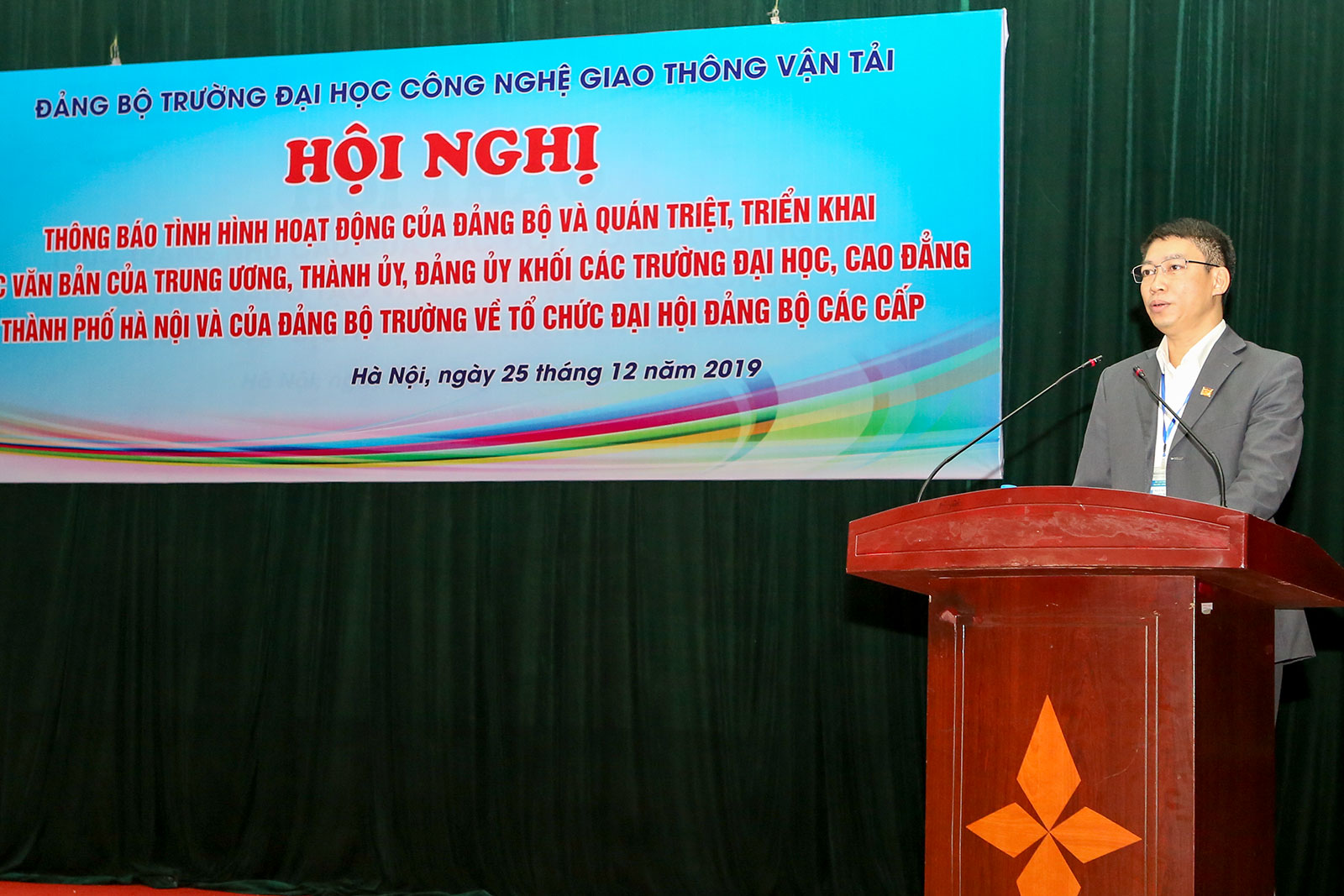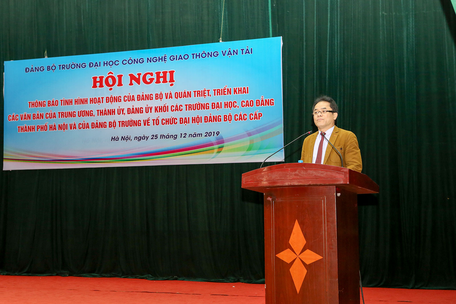 Ngày 25/12/2019, Đảng ủy Trường Đại học Công nghệ Giao thông vận tải tổ chức Hội nghị quán triệt, triển khai các văn bản của Trung ương, Thành ủy, Đảng ủy Khối các trường ĐH, CĐ Hà Nội và của Đảng bộ Trường về tổ chức đại hội đảng bộ các cấp.