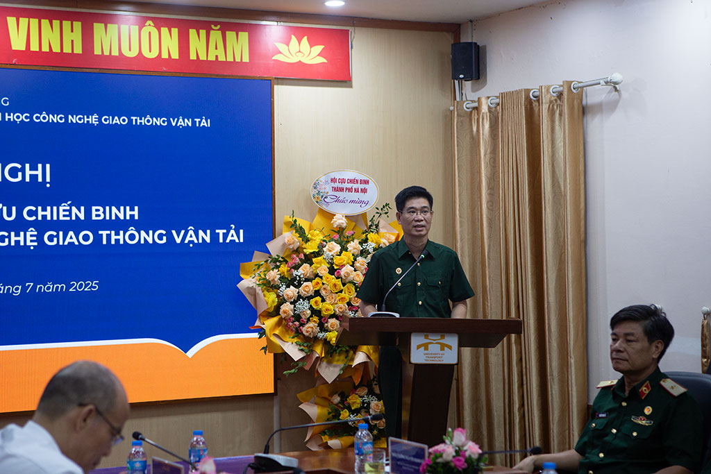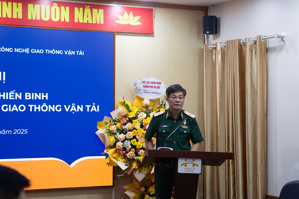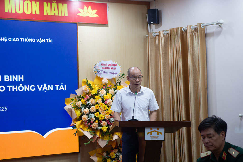 Thay mặt Ban Giám hiệu, TS. Trần Hà Thanh - Ủy viên BTV Đảng Ủy, Phó Hiệu trưởng Nhà trường ghi nhận và đánh giá cao sự đóng góp của các cựu chiến binh trong sự nghiệp xây dựng và phát triển Nhà trường. Đồng thời bày tỏ mong muốn các hội viên tiếp tục phát huy tinh thần đoàn kết, giữ vững phẩm chất người lính, là lực lượng gương mẫu, tiên phong trong mọi hoạt động của Trường Đại học Công nghệ GTVT.