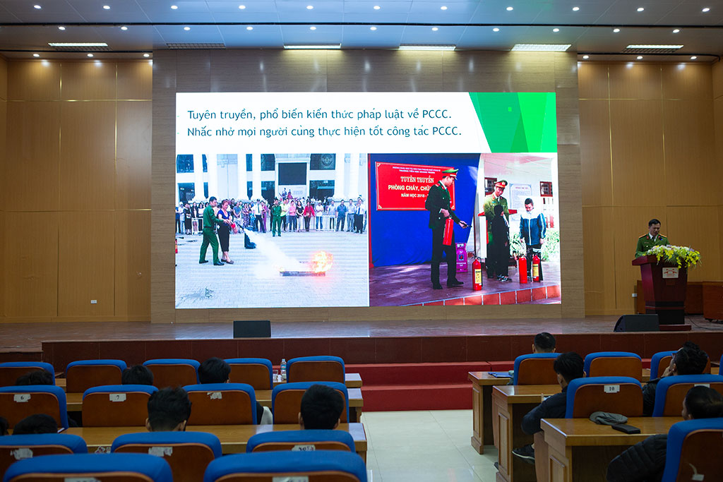 Dự chương trình có các thầy cô giáo, cán bộ, viên chức, người lao động cùng các em sinh viên tại các cơ sở đào tạo của Trường. Chương trình tập huấn được triển khai với hai nội dung chính là tuyên truyền, phố biến kiến thức về phòng cháy chữa cháy, cứu hộ cứu nạn và thực hành nghiệp vụ, diễn tập phương án chữa cháy tại giảng đường A3, A6 của Trường tại cơ sở Hà Nội.