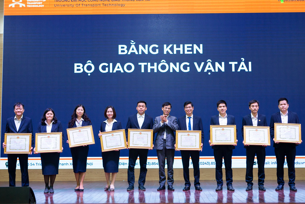Hội nghị đã công bố các quyết định khen thưởng, theo đó Bộ GTVT đã trao tặng Danh hiệu tập thể lao động xuất sắc cấp Bộ cho Trường Đại học Công nghệ GTVT; trao Bằng khen Bộ GTVT cho 01 tập thể và các cá nhân hoàn thành xuất sắc nhiệm vụ trong năm qua; trao Bằng khen của Công đoàn GTVT Việt Nam cho các tập thể và cá nhân có thành tích xuất sắc tiêu biểu trong phong trào thi đua lao động giỏi và xây dựng tổ chức công đoàn vững mạnh; tặng Giấy khen của Hiệu trưởng cho 14 tập thể lao động xuất sắc và 77 cá nhân; trao giải thưởng ý tưởng, sáng kiến nâng cao chất lượng hiệu quả công tác năm 2024 cho các tập thể và cá nhân xuất sắc.