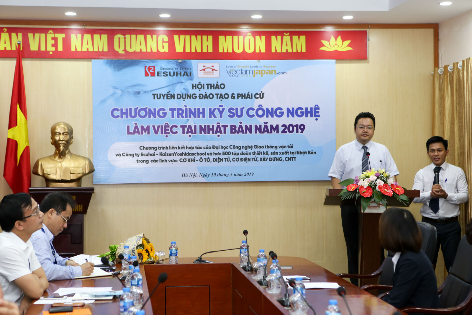 Tiếp nối thành công của chương trình hợp tác giữa Nhà trường và các doanh nghiệp Nhật Bản về việc đưa sinh viên của Nhà trường sang làm việc tại Nhật Bản, ngày 10/5/2019, Trường Đại học Công nghệ GTVT phối hợp với Công ty Esuhai tổ chức Hội thảo giới thiệu Chương trình làm việc diện kỹ sư công nghệ tại Nhật Bản 2019.