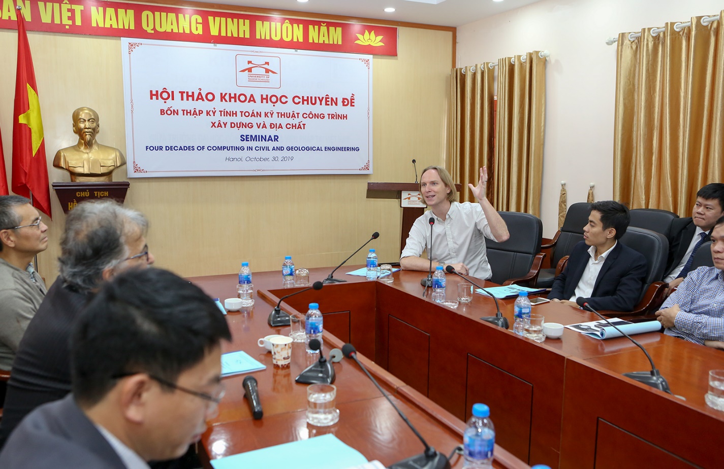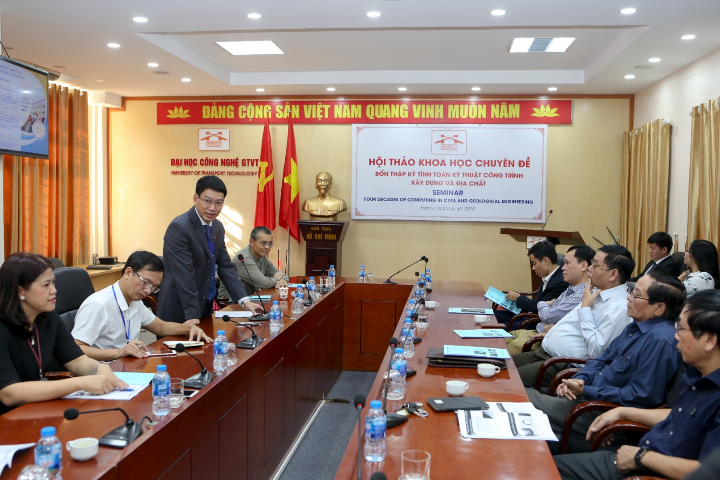 Trong khuôn khổ Hội thảo quốc tế lần thứ 5 về Địa kỹ thuật, Kết cấu và Xây dựng (CIGOS 2019): “Đổi mới vì một cơ sở hạ tầng bền vững” do Trường Đại học Công nghệ GTVT phối hợp cùng Hội khoa học và chuyên gia Việt Nam toàn cầu phối hợp tổ chức, ngày 30/10/2019 tại Phân hiệu Trường Đại học Công nghệ GTVT đã diễn ra hội thảo chuyên đề “Bốn thập kỷ tính toán kỹ thuật địa chất và công trình – Four Decades of Computing in Civil and Geological Engineering”