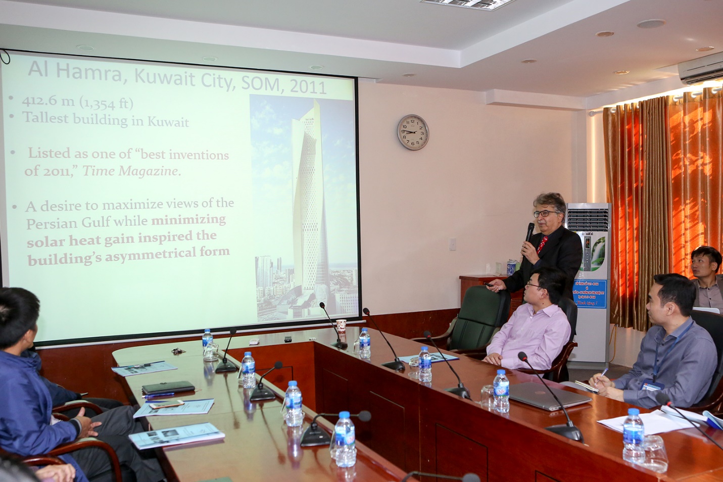 Bài trình bày trong 90 phút với chủ đề “Smart and Sustainable Signature Highrise Building Structures” của GS. Hojjat Adeli đã cung cấp nhiều thông tin hữu ích liên quan tới công nghệ tính toán, phương pháp tối ưu các công trình đặc biệt trong đó có nhiều công trình nhà cao tầng nổi tiếng trên thế giới. Ngoài ra, GS Adeli còn nhấn mạnh và giải thích một số thuật toán phân tích dữ liệu trích xuất từ “Hệ thống giám sát sức khỏe kết cấu - Structural health monitoring systems”. Đây được coi là giải pháp công nghệ cho phát triển bền vững, giúp dự báo và kiểm soát mọi rủi ro có thể xảy ra tới công trình trong xuất vòng đời dự án.