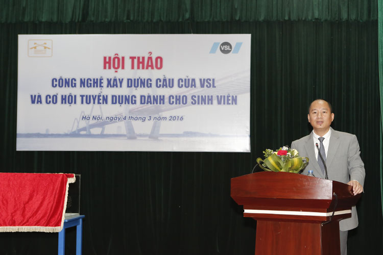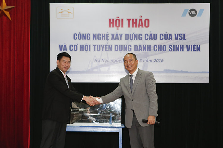 Thực hiện Biên bản ghi nhớ ký ngày 09/10/2015 về hợp tác trong các lĩnh vực đào tạo, nghiên cứu khoa học và chuyên giao công nghệ giữa trường Đại học Công nghệ GTVT với Công ty VSL Việt Nam. Sáng ngày 04/3/2016, Trường Đại học Công nghệ GTVT phối hợp với Công ty VSL tổ chức hội thảo về công nghệ xây dựng cầu của VSL và cơ hội tuyển dụng dành cho sinh viên nhằm giới thiệu, chia sẻ kinh nghiệm trong việc thi công xây dựng cầu bằng các phương pháp hiện đại và giới thiệu về cơ hội việc làm, kỹ năng cần thiết cho sinh viên khi tham gia ứng tuyển góp phần nâng cao chất lượng đào tạo nguồn nhân lực trong lĩnh vực xây dựng công trình giao thông cho trường Đại học Công nghệ GTVT.
