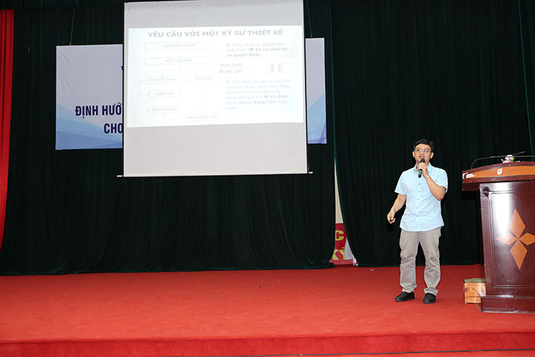 Ông Lê Hồng Lĩnh - Phó Giám đốc kỹ thuật Công ty Hanoi CNC JSC giới thiệu về công ty và quy trình thiết kế máy, yêu cầu đối với kỹ sư thiết kế