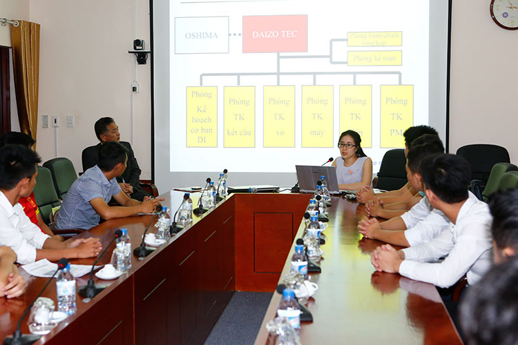 Ông Fudokawa Eiji - Tổng Giám đốc Công ty Daizo Tec có những giới thiệu về công ty, về đặc thù công việc và nhu cầu tuyển dụng của công ty trong thời gian tới. Công ty Daizo Tec thành lập ngày 02/6/2006 là Công ty 100% vốn Nhật Bản chuyên thiết kế các sản phẩm tàu biển cho công ty mẹ tại Nhật Bản – Công ty Cổ phần đóng tàu OSHIMA SHIPBUILDING CO.,LTD. Được thành lập năm 1973, hàng năm Công ty đóng tàu OSHIMA đóng khoảng 36 tàu chở hàng rời tải trọng từ 30,000 tấn đến 120,000 tấn phục vụ khách hàng trên khắp thế giới. Cùng sự giúp đỡ về mặt kinh nghiệm, kỹ thuật từ Oshima Shipbuilding, hoạt động kinh doanh của Daizo Tec bao gồm thiết kế tàu thuỷ và các bộ phận đi kèm bằng cách sử dụng phần mềm thiết kế chuyên dùng.