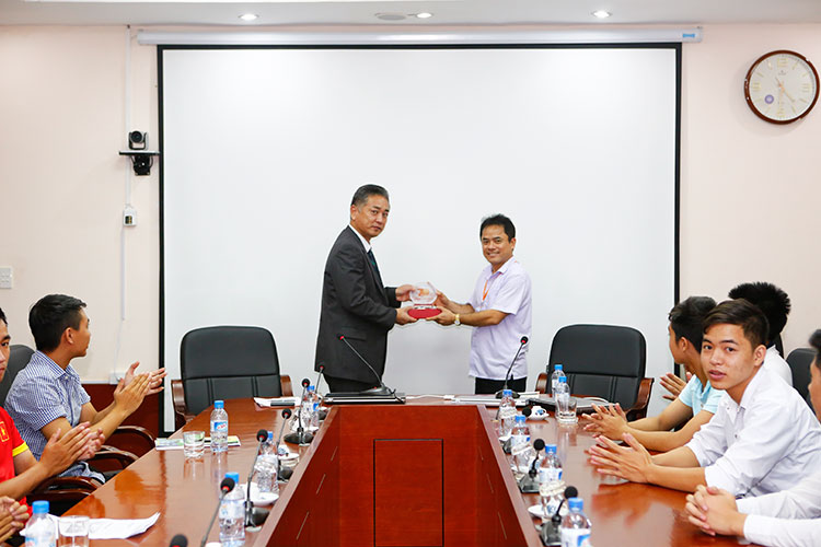 TS. Vũ Ngọc Khiêm tặng logo kỷ niệm 70 năm thành lập Trường cho ngài Tổng giám đốc công ty Daizo Tec