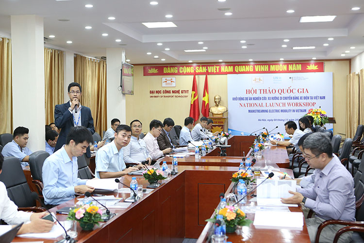 Phát biểu tại Hội thảo, TS. Khuất Việt Hùng - Phó Chủ tịch chuyên trách, Ủy ban An toàn giao thông Quốc gia cho biết tất cả các nghiên cứu cho đến nay đều thừa nhận ưu thế về bảo vệ môi trường của phương tiện xe điện, đặc biệt là giảm tỉ lệ phát thải các chất độc hại ra môi trường và vấn đề nguồn năng lượng hóa thạch đang cạn kiệt. TS. Khuất Việt Hùng mong muốn nghiên cứu này sẽ chỉ ra được lợi ích của phương tiện chạy điện, đưa ra được mô hình hệ sinh thái cho phương tiện chạy điện tại Việt Nam, chỉ ra những quy định pháp luật, quy chuẩn quốc gia cần được quan tâm, điều chỉnh để thể chế hóa những kết quả nghiên cứu và áp dụng vào thực tiễn. Cuối cùng, TS. Khuất Việt Hùng tin tưởng nhóm nghiên cứu của Trường Đại học Công nghệ GTVT và các trường đại học, các viện nghiên cứu, nhóm cố vấn sẽ giúp cho những định hình, chỉ ra những hạn chế rất lớn trong quy định pháp luật và tiêu chuẩn giao thông Quốc gia của Việt Nam, đưa được kết quả nghiên cứu áp dụng vào Việt Nam, giúp cho UNEP và Liên hiệp Quốc có thể nhân rộng mô hình này sang những quốc gia khác, góp phần vào quá trình cắt giảm nhứng tác động tiêu cực tới môi trường.